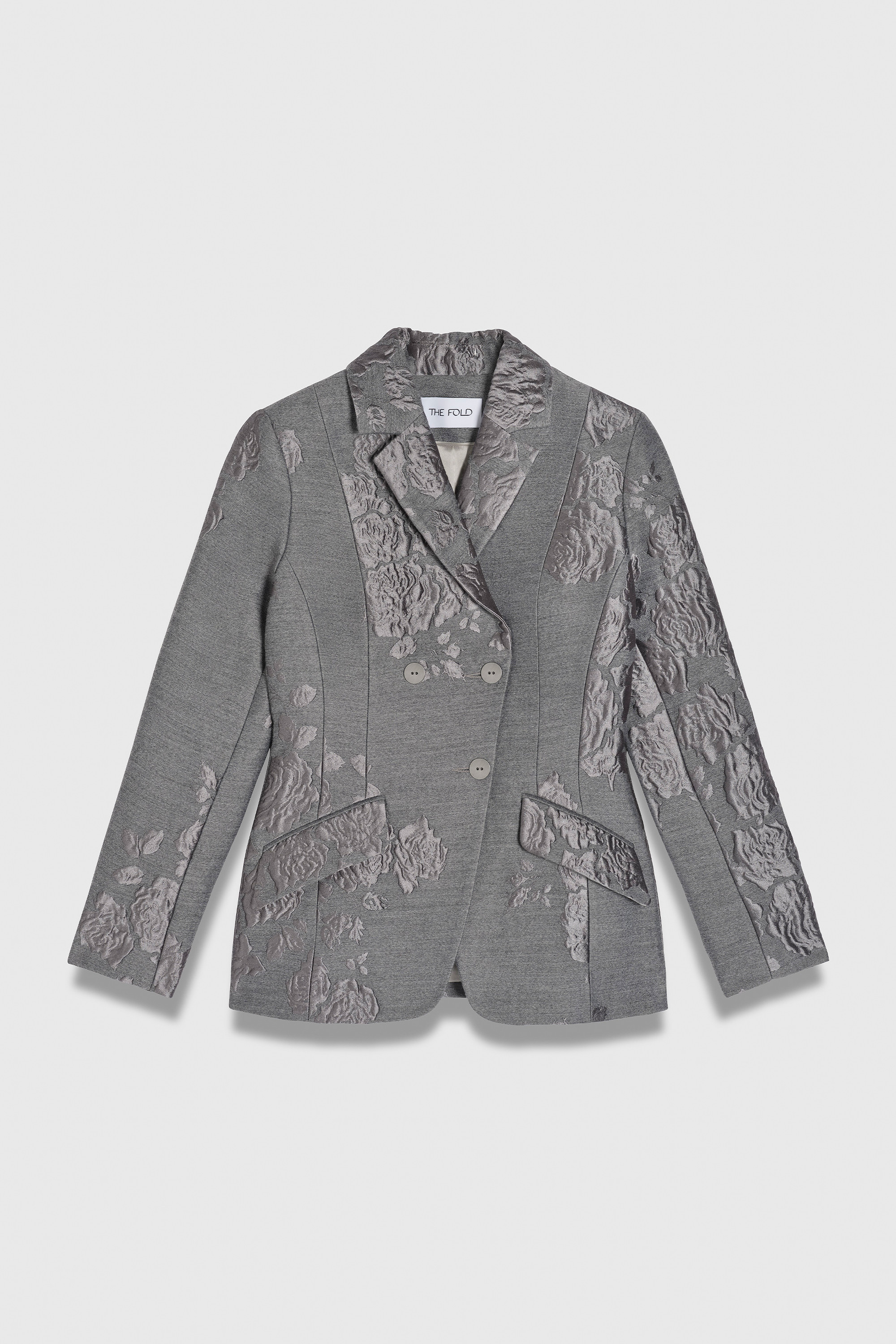 - Soft steel grey Italian rose jacquard.