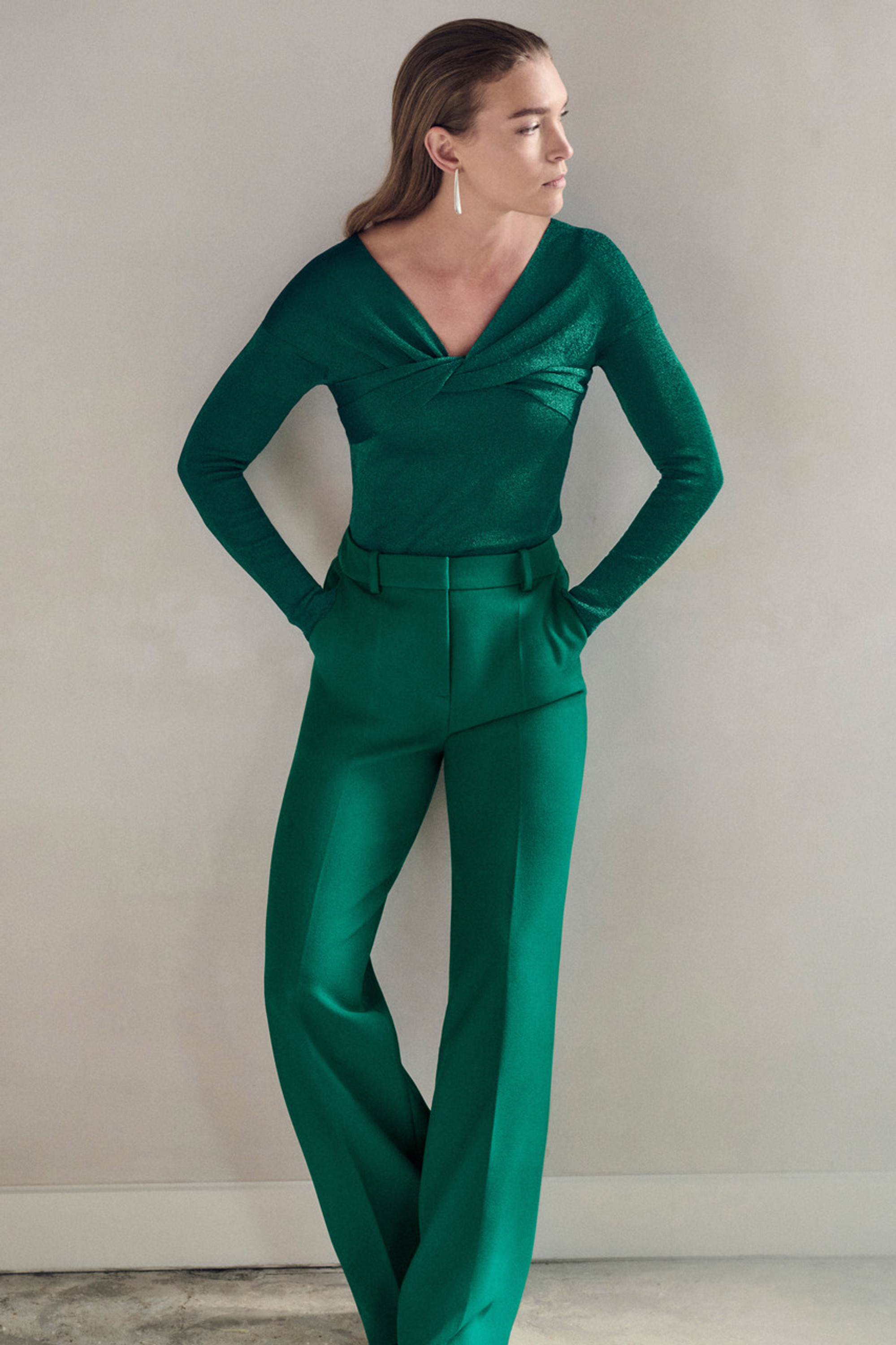 - Cyanine Green sculpt stretch crepe.
