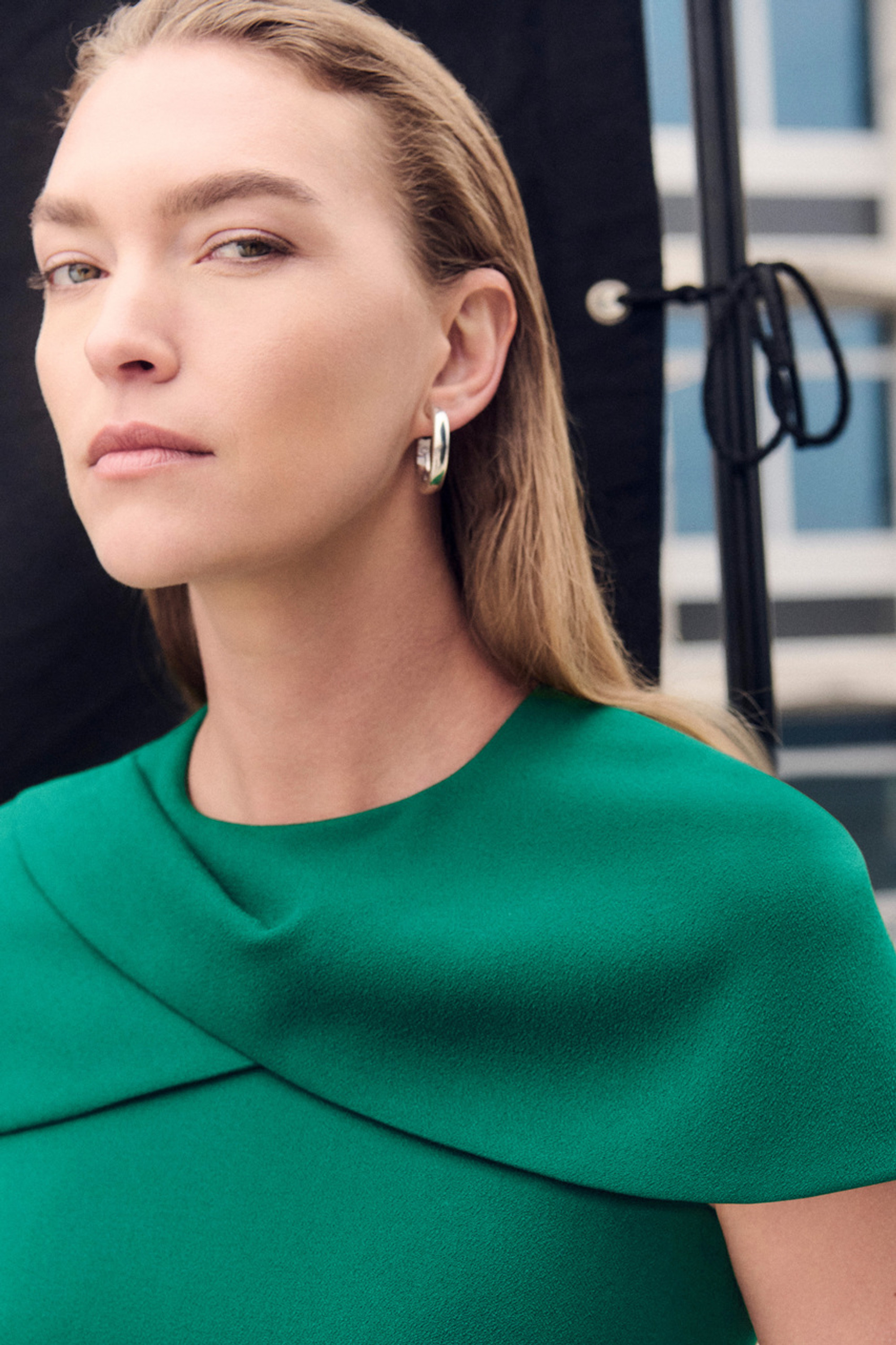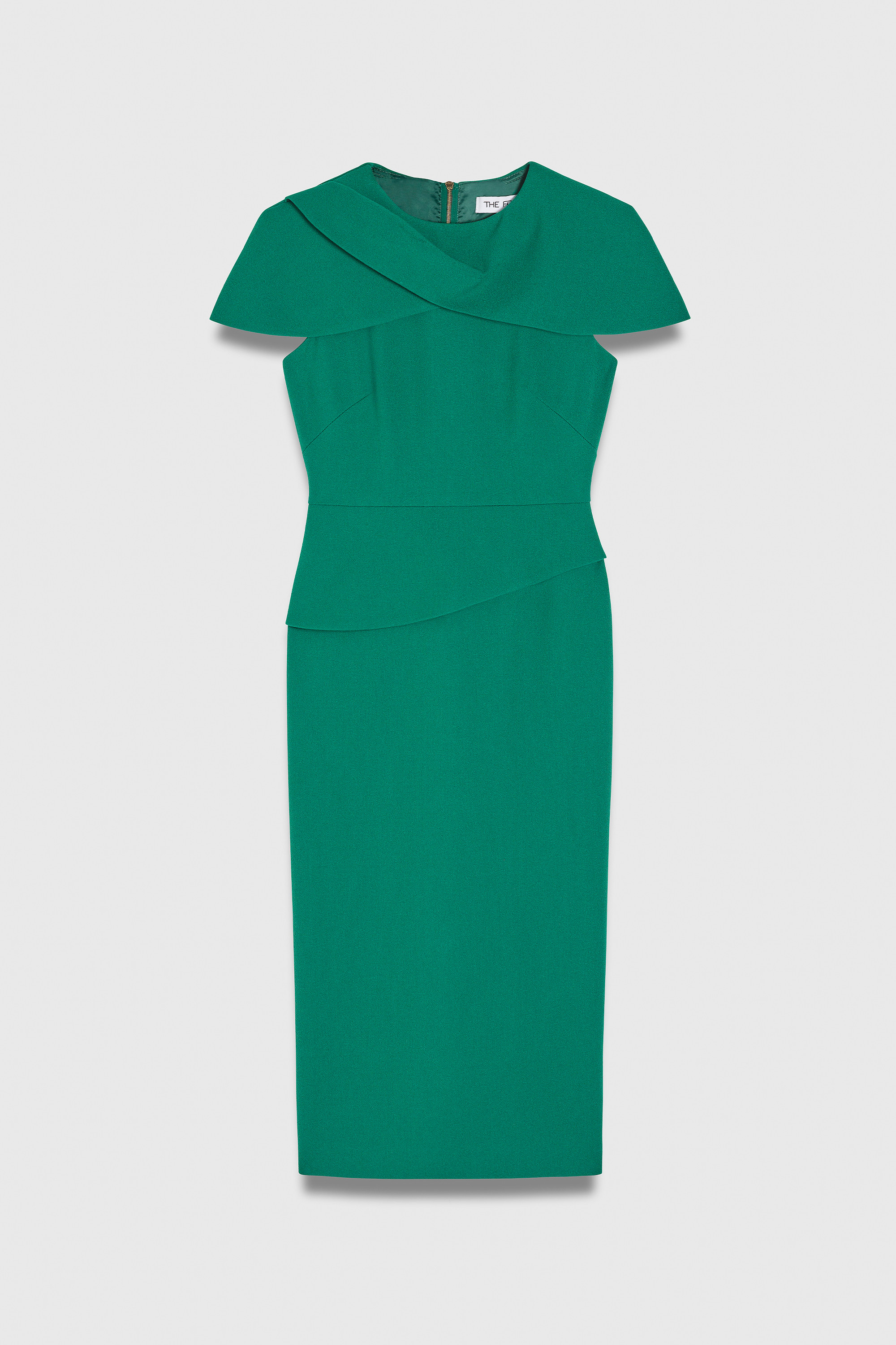Designed for big days at work and events, the Athina dress spotlights an elegant shawl detail that drapes across the shoulders and round the neck. Our favourite peplum waist adds further architectural intrigue, while the sculpt stretch crepe it’s crafted from ensures a fitted, tailored finish.