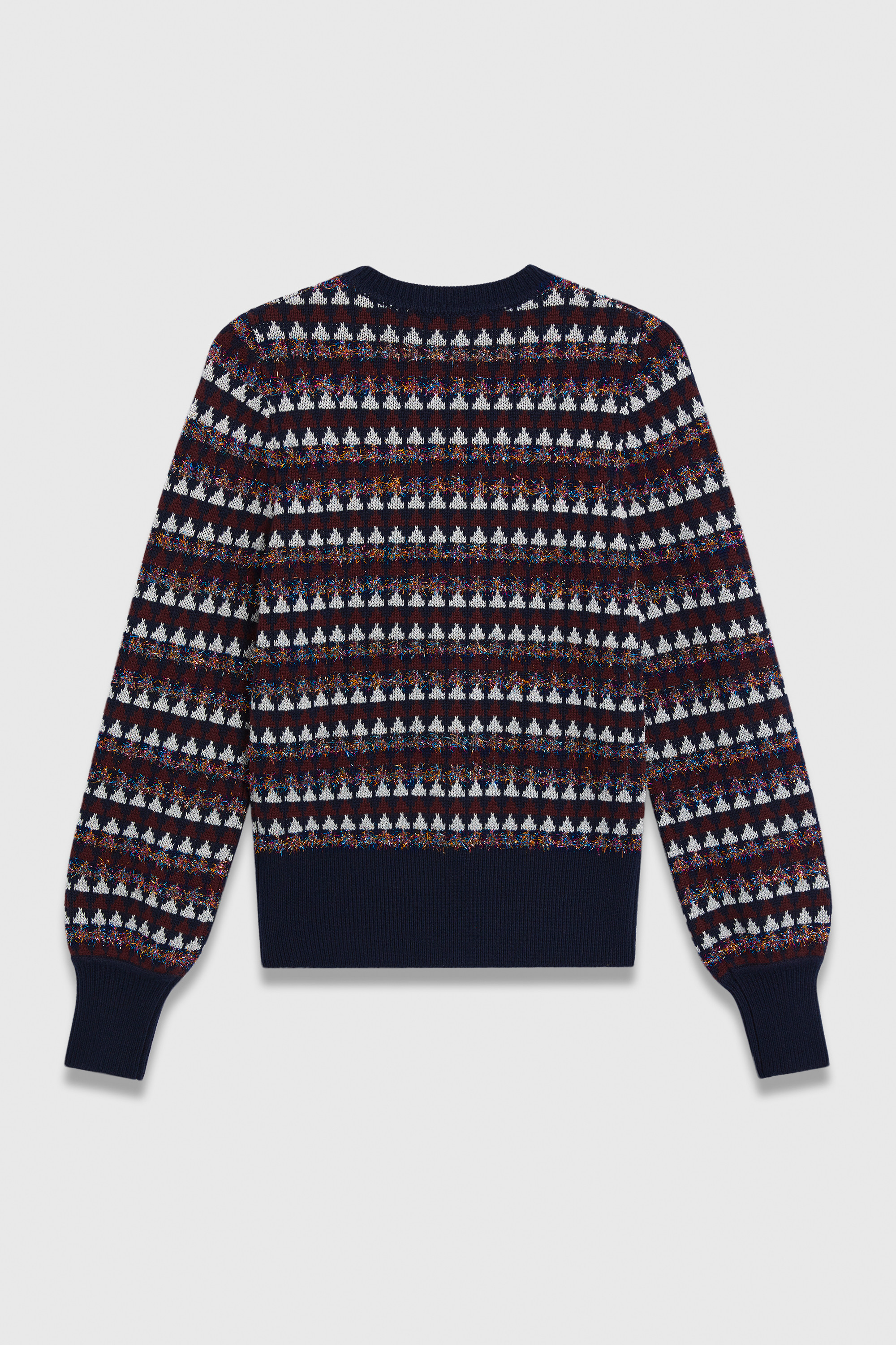 There’s festive knits, and there’s festive knits by us. Set on a sophisticated navy merino wool base, the Ayen jumper is detailed with celebratory metallic lurex yarns and a jacquard knit. Style yours with jeans all season long.