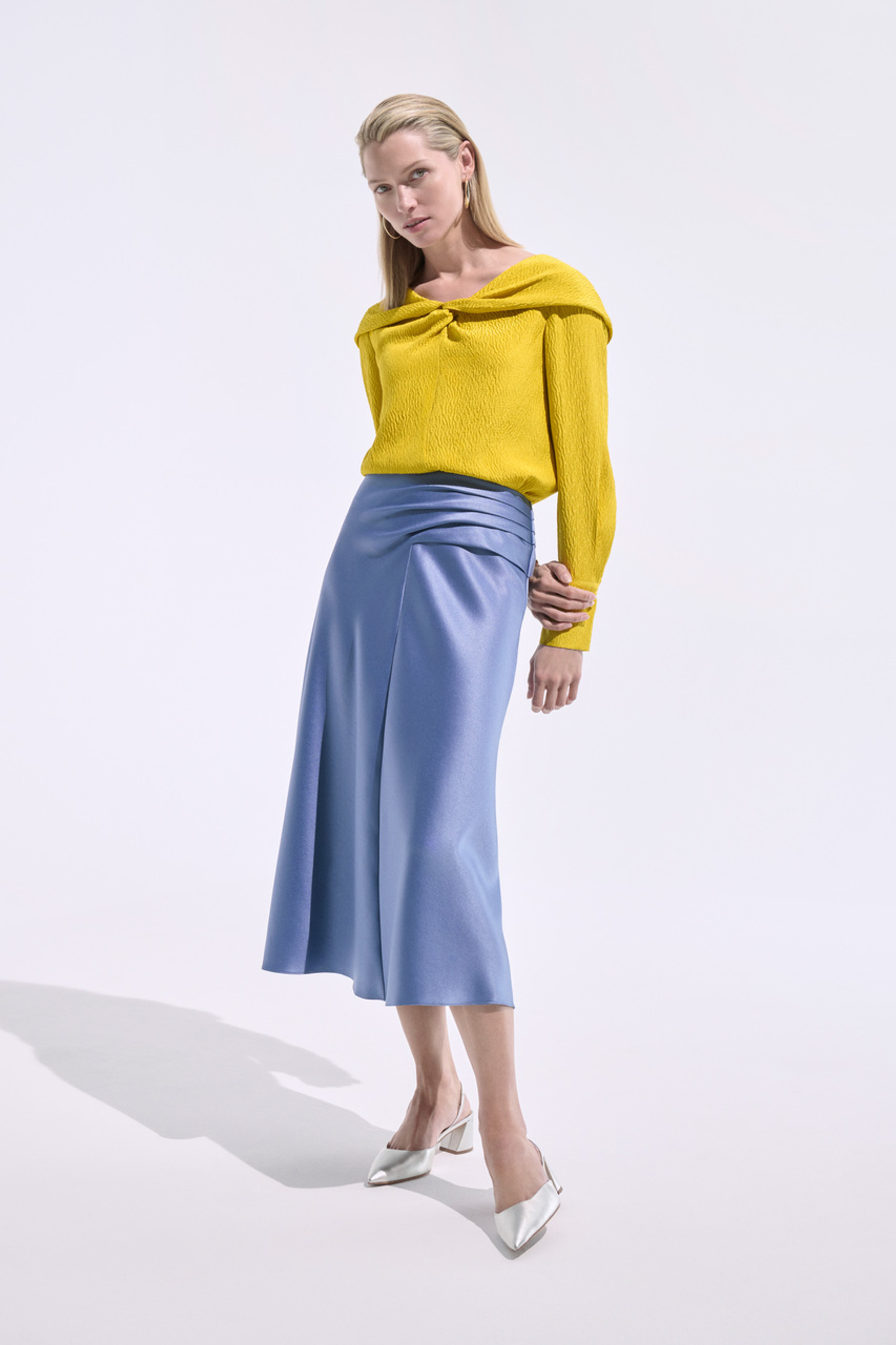 Crafted from luxurious satin, the Belsito skirt is cut to a fluid silhouette with our signature pleat detailing to the side of the waist. Sleek and classic, it’s the ultimate slip-on-and-go separate – pair yours with the coordinating Tirana top or your favourite shirt.