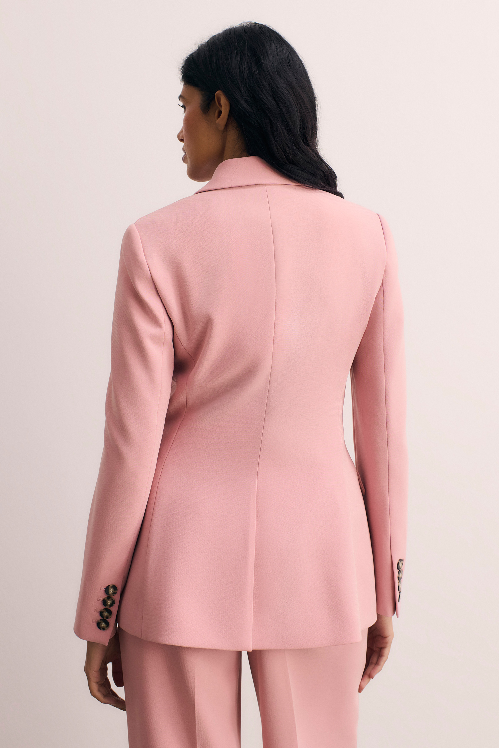 Double-breasted but not boxy, our signature Knighton jacket drapes beautifully on all body types. It's cut to a longline, semi-fitted silhouette with neat shoulders and subtle seam detailing for shaping throughout the body. Style yours with the coordinating Adelaide trousers.