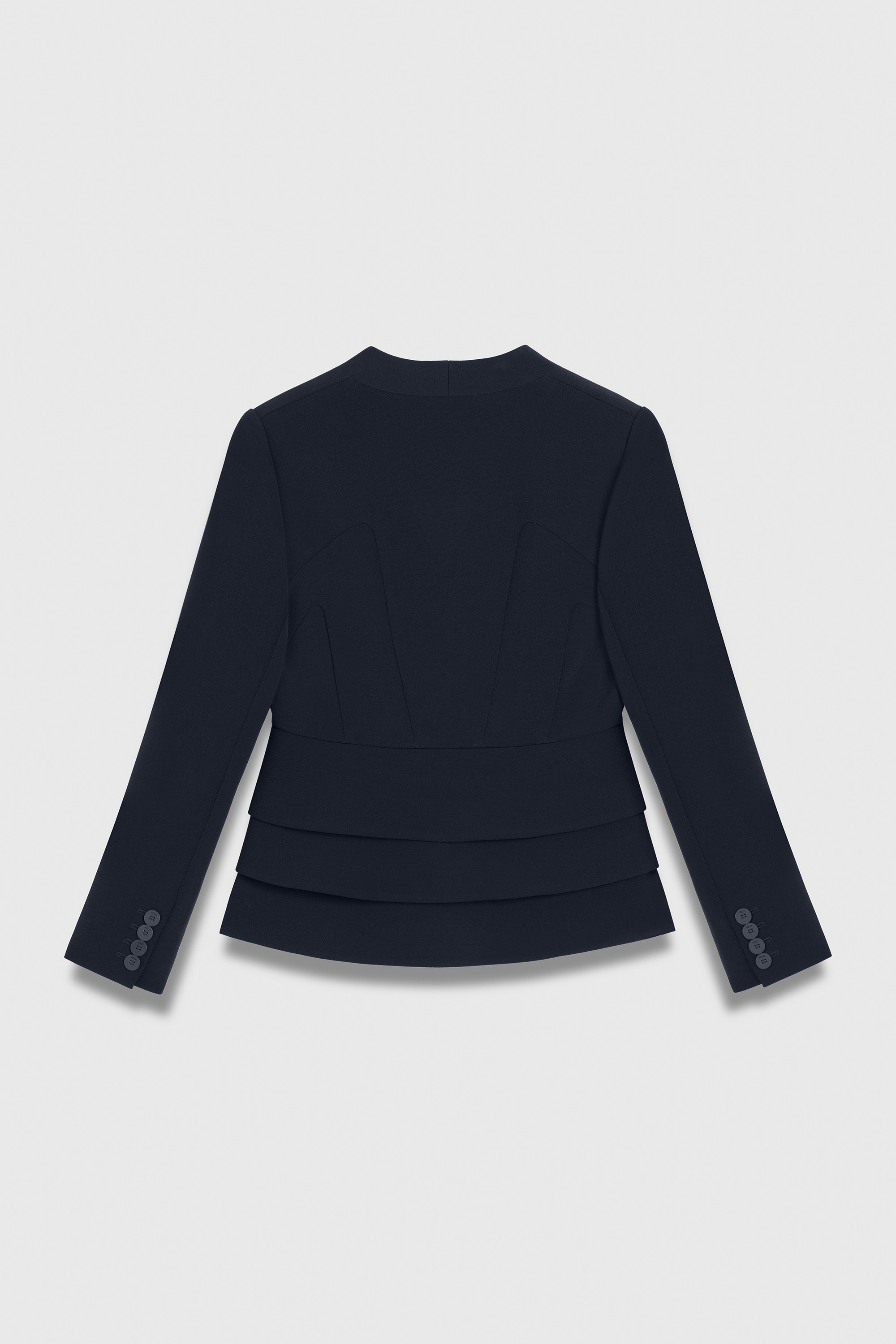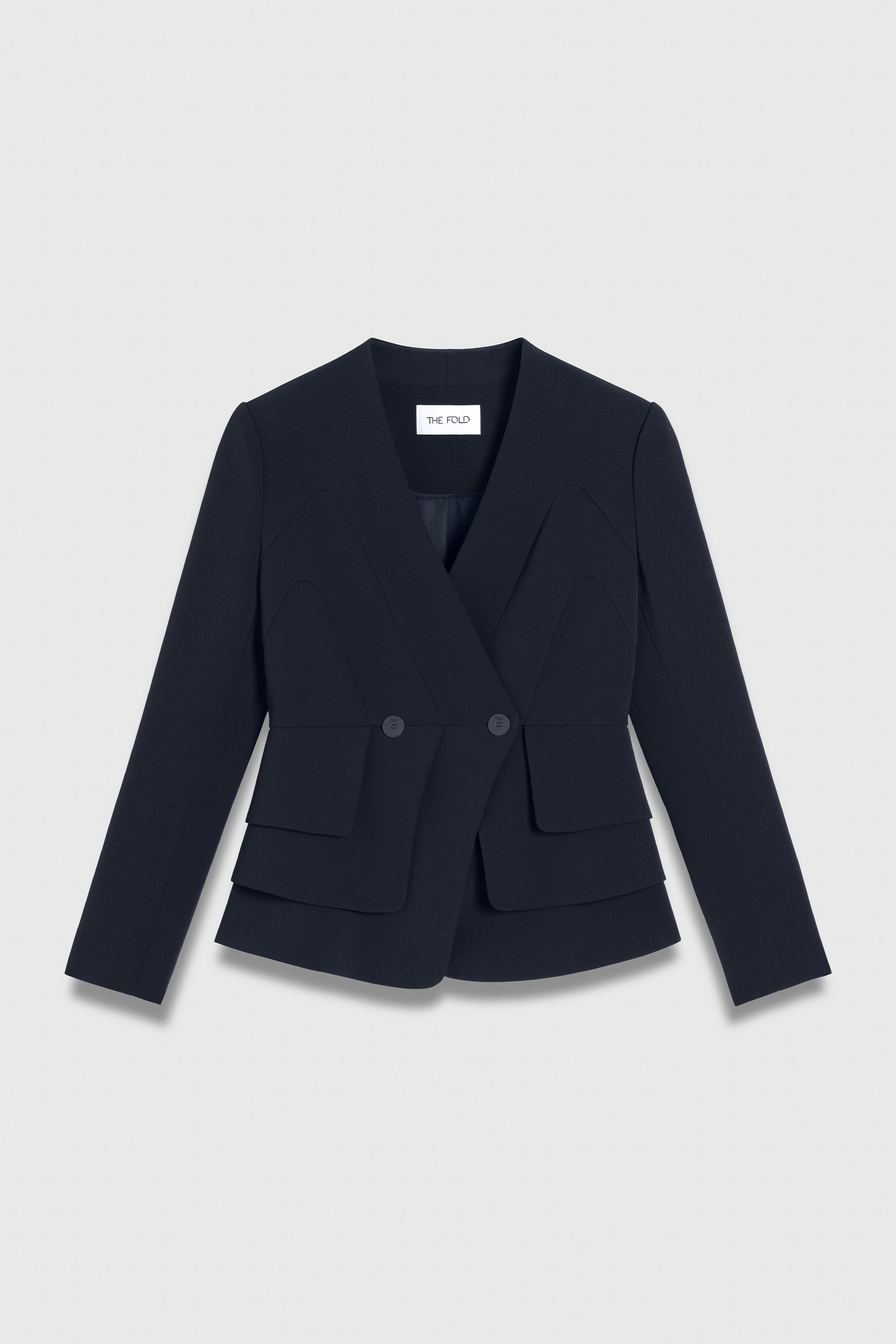 Cut to a double-breasted silhouette with a small wrap, the Henley has enough coverage to be worn open over blouses or closed as a top. Flat seams create a moulded hourglass silhouette, while its cutaway peplum adds volume at the hips. Wear yours with our Adelaide trousers.