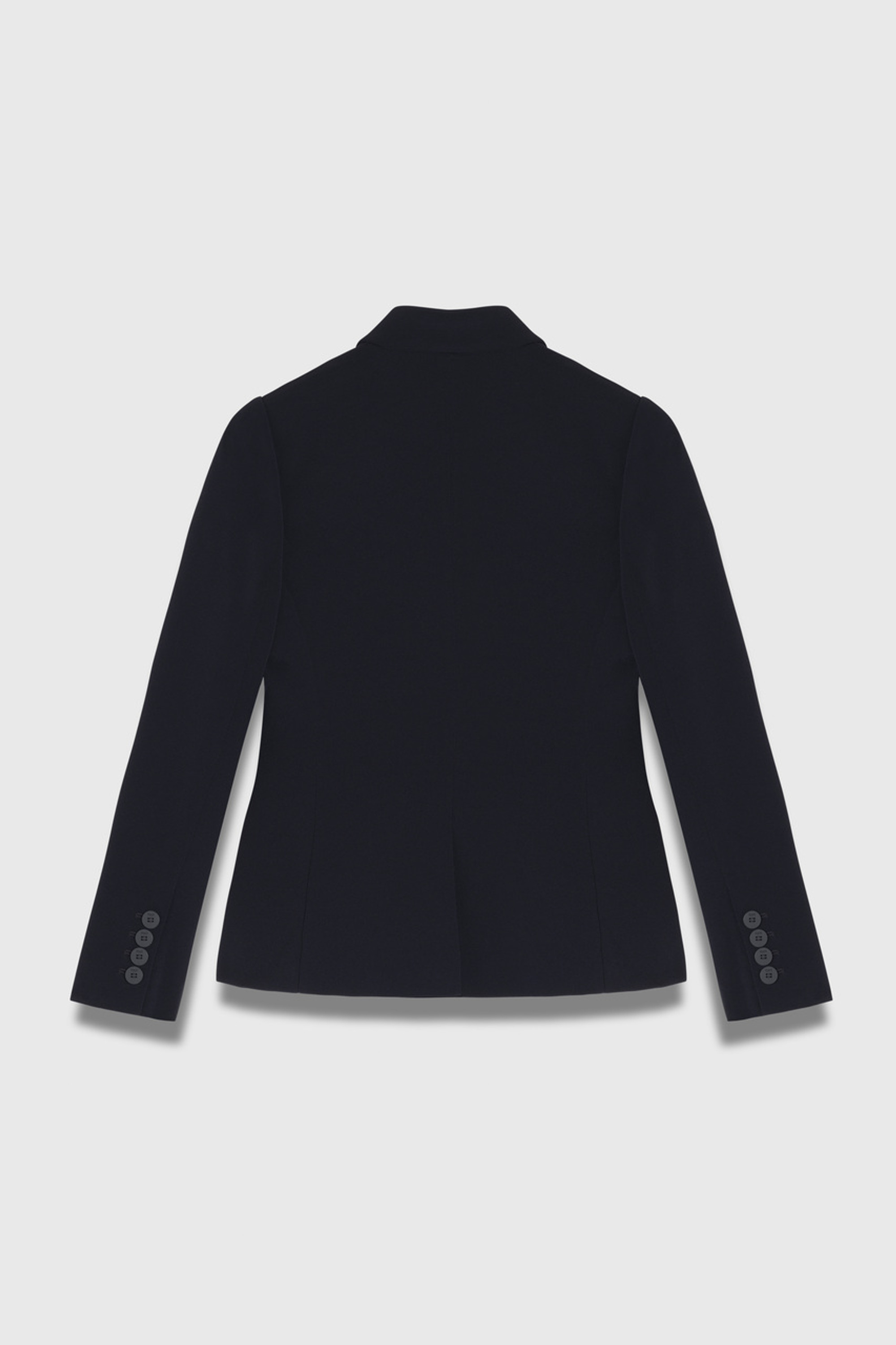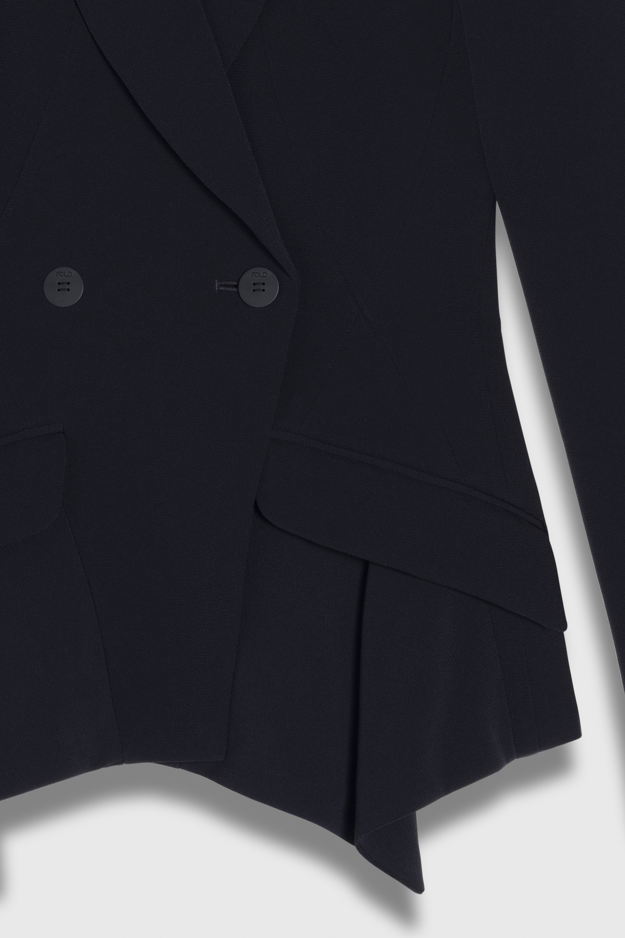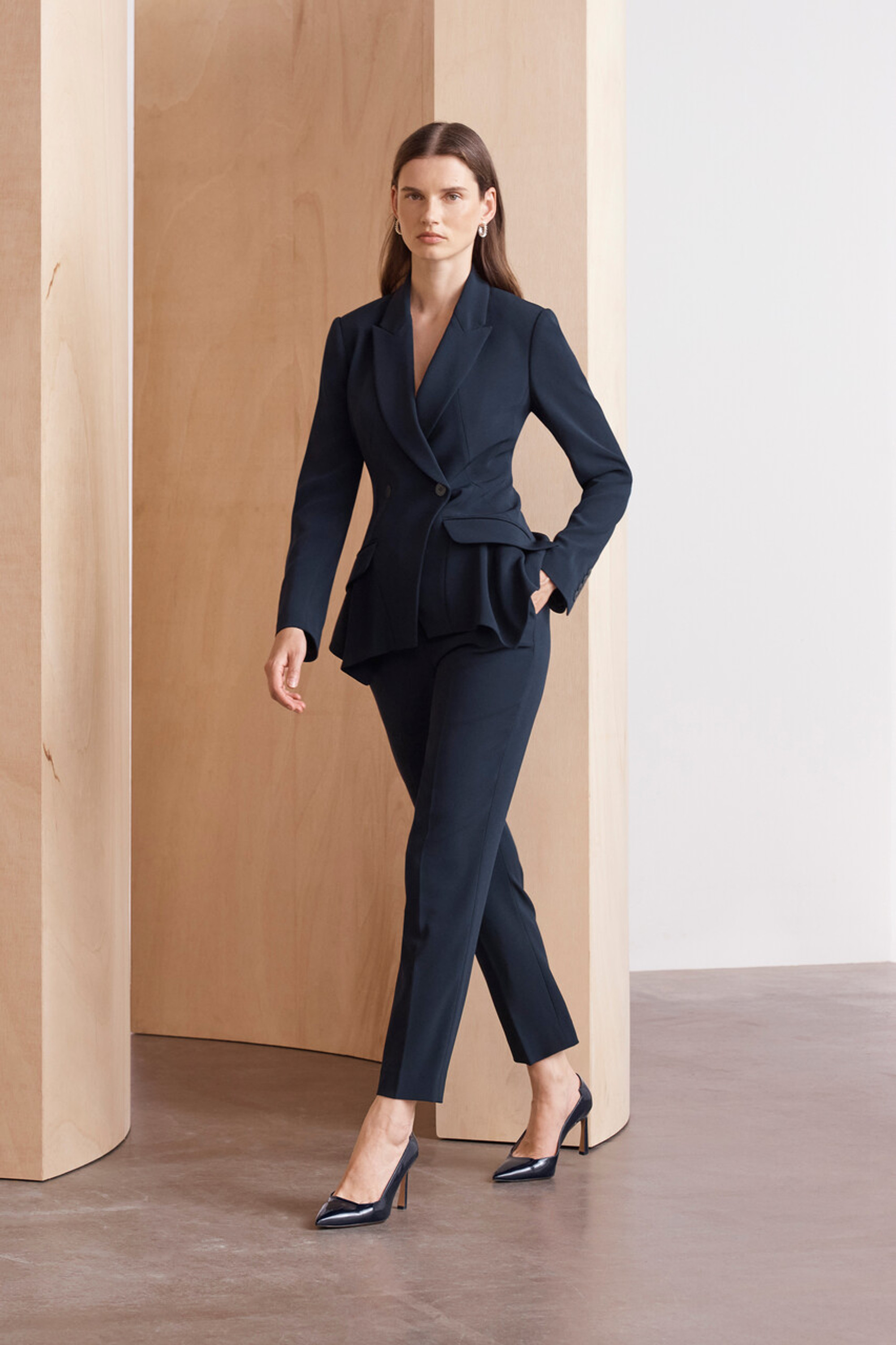 Expertly tailored from Clever Crepe, the Merida jacket is an exercise in meticulous craftsmanship. Peak lapels and a double-breasted fastening keep it classic, while draped waterfall details under each pocket add an elegant touch. Style yours with the coordinating Clever Crepe trousers or skirt.