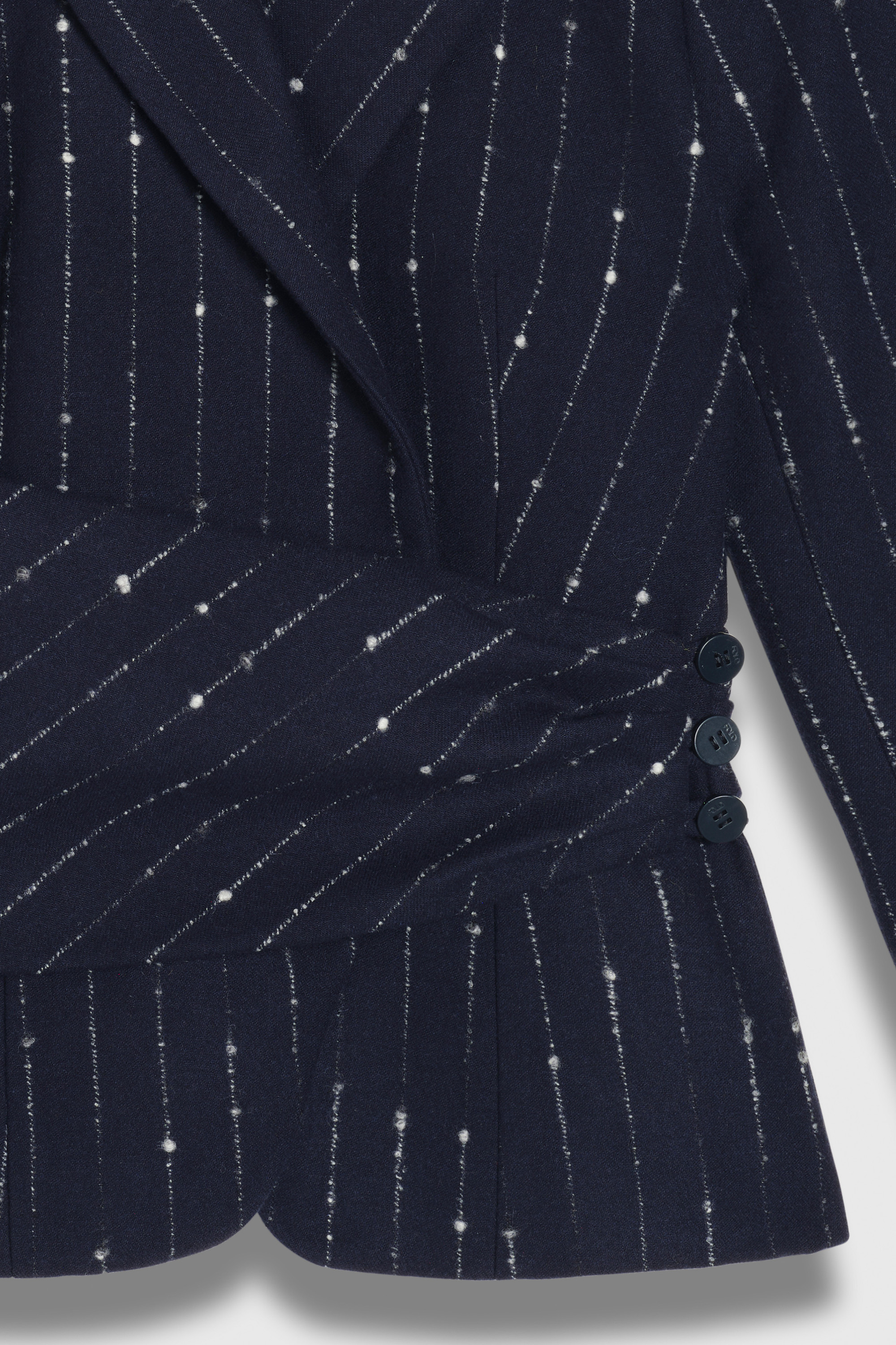 Our bestselling Collingham jacket now comes in a striking boucle pinstripe. Crafted from Italian wool, it's a sharp silhouette in a beautifully soft fabric – perfect for making a statement. Style yours with the coordinating Hartwood trousers or Kerrison skirt.