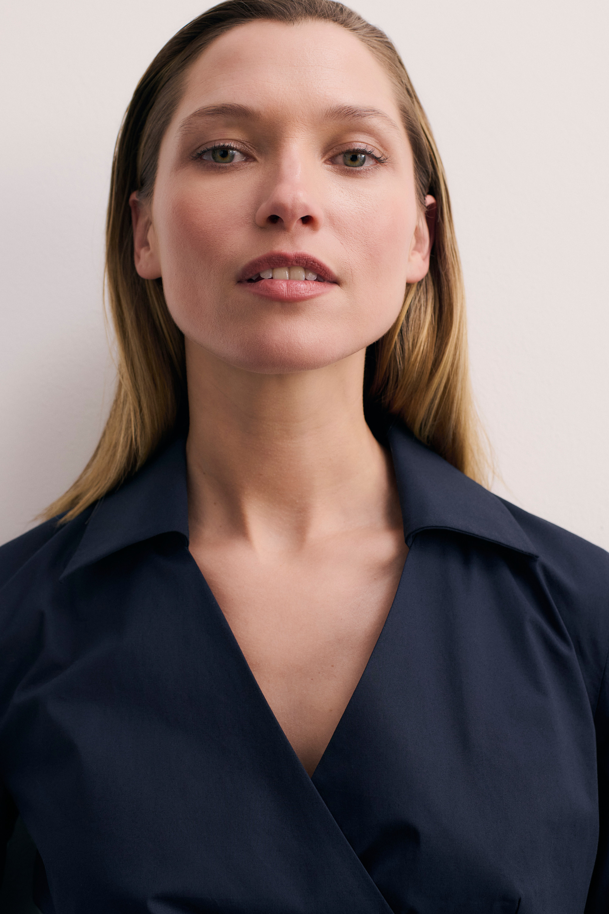 - Dry hanging on a coat hanger with wide ends to avoid shoulder impressions