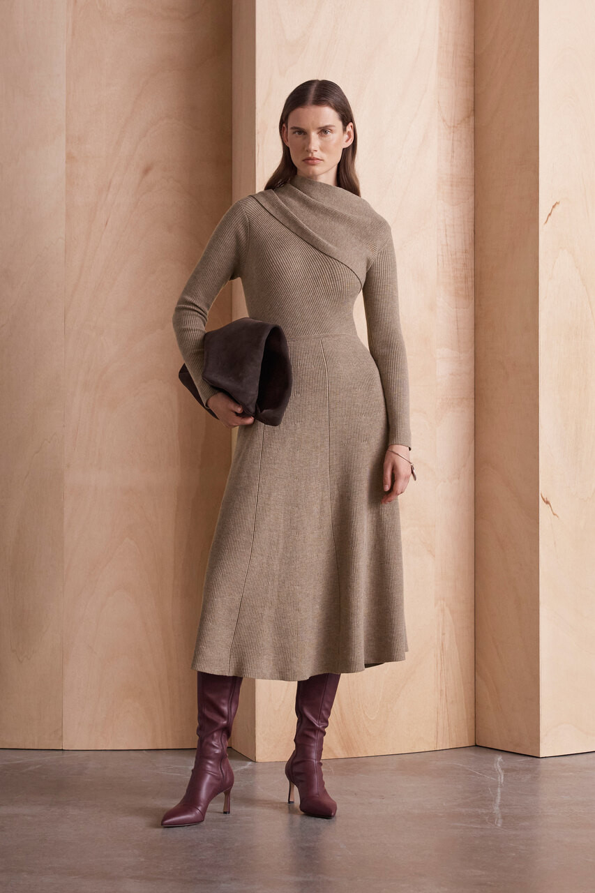 The desk-to-dinner dress that won’t let you down, Ferno is crafted from sumptuous merino wool to a timeless ribbed silhouette. Featuring an elegant wrapped neckline inspired by the bestselling Riva sweater, it has a warm hand-feel that’s perfect for cooler days.