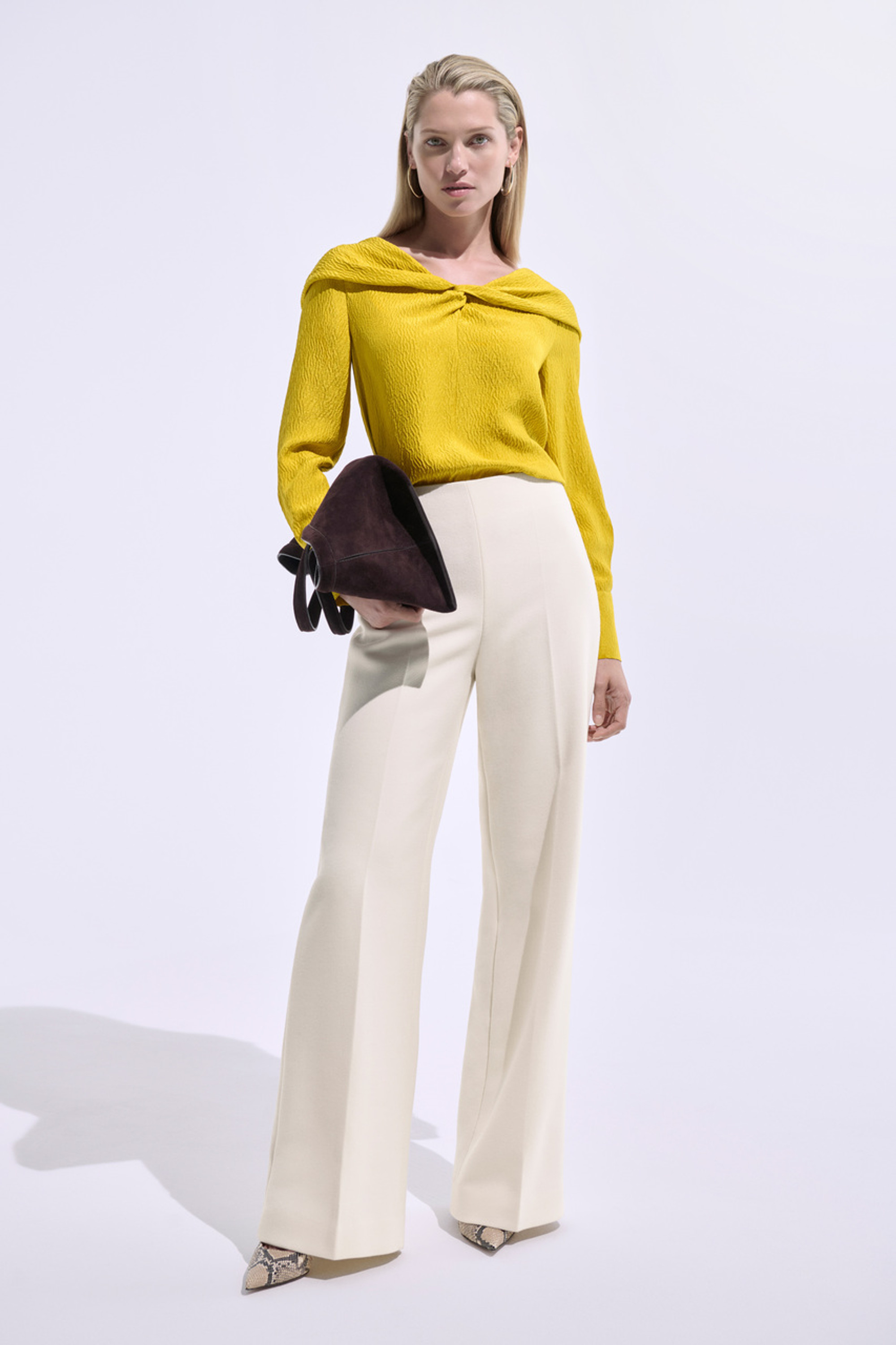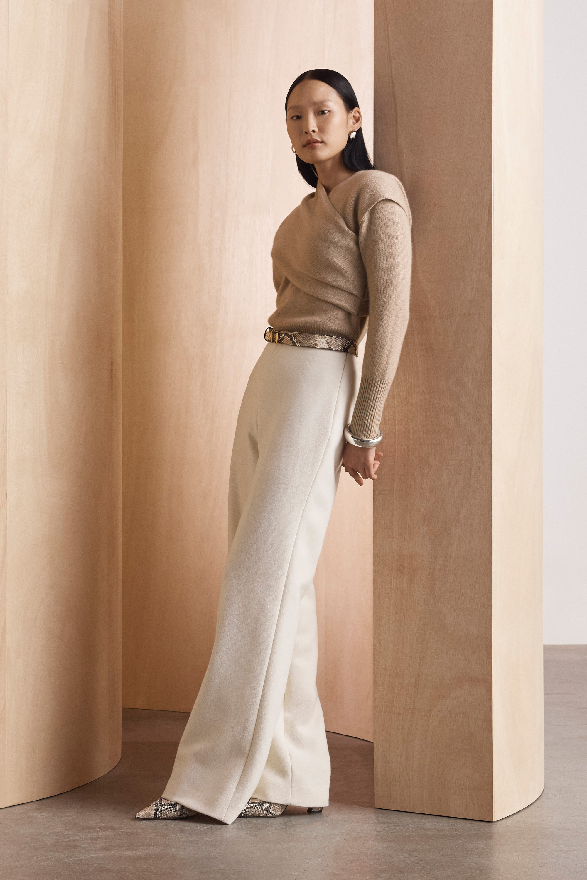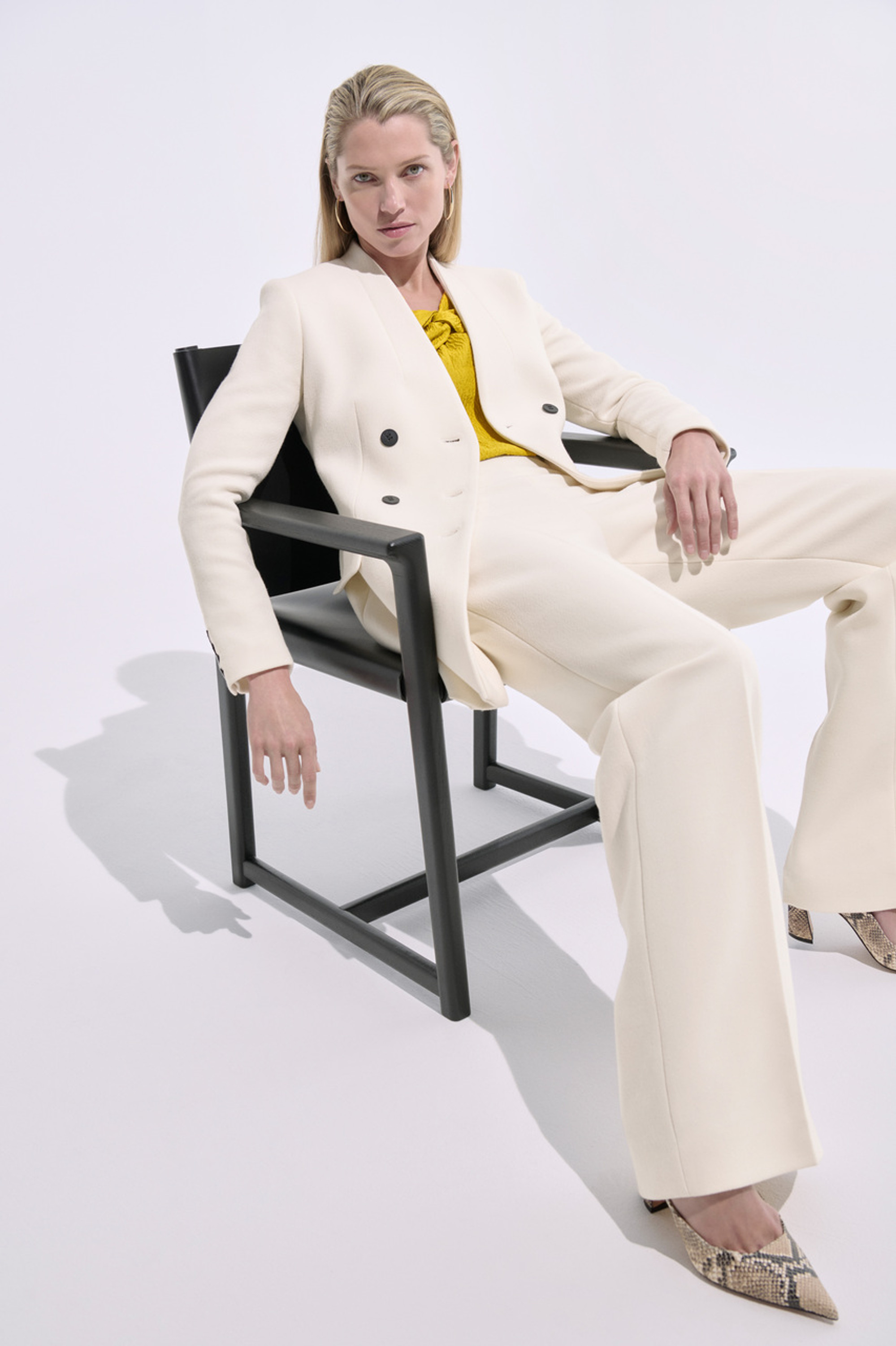- Ivory Italian textured wool blend.