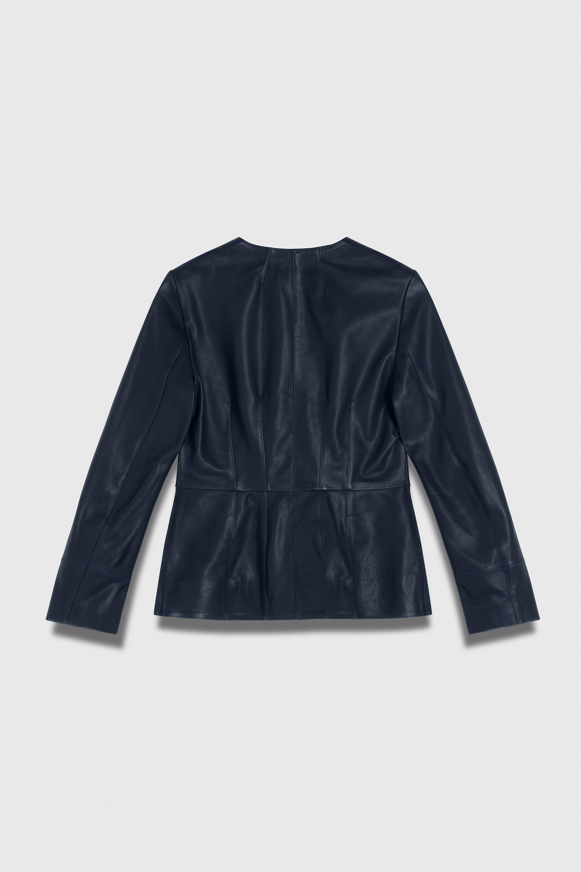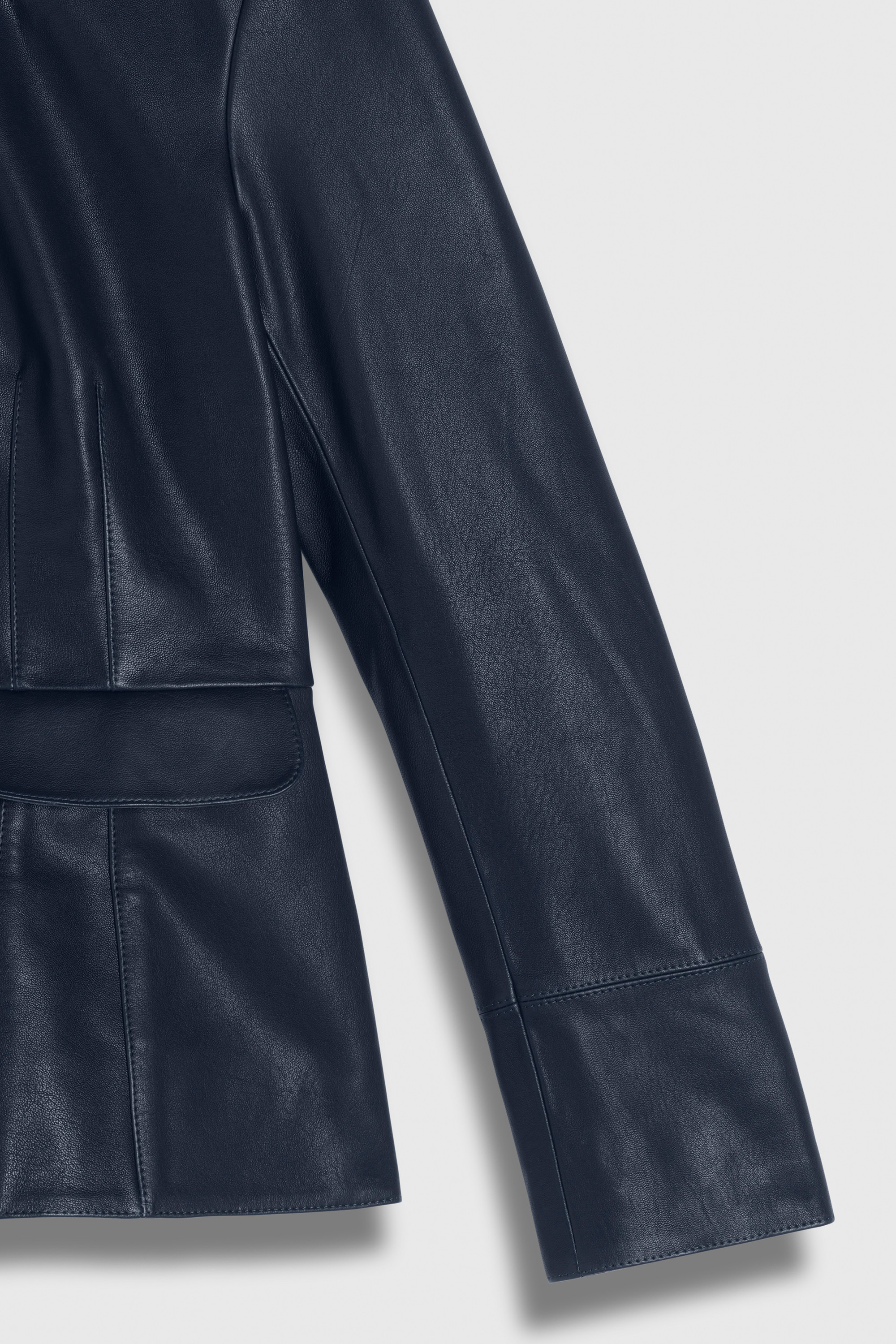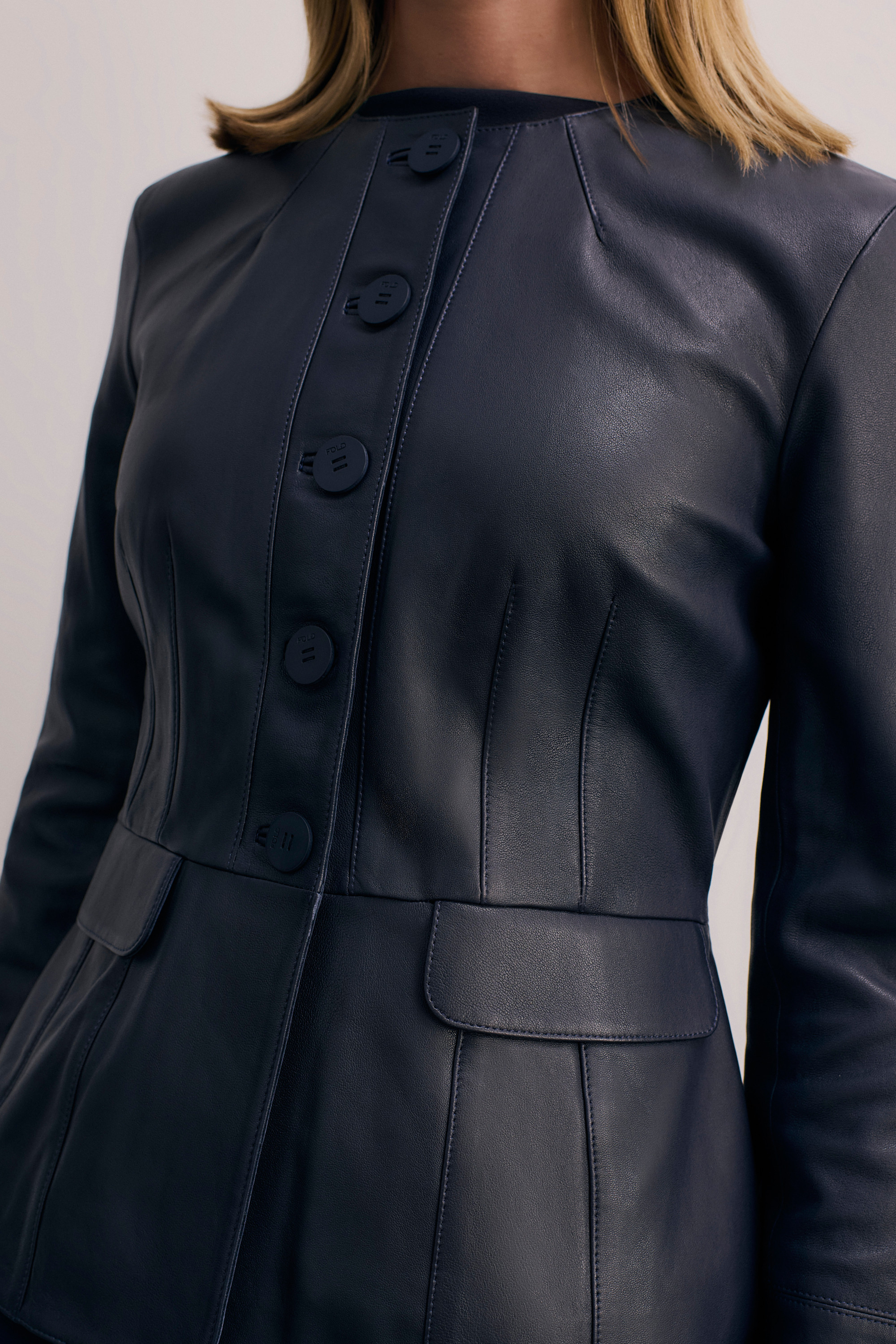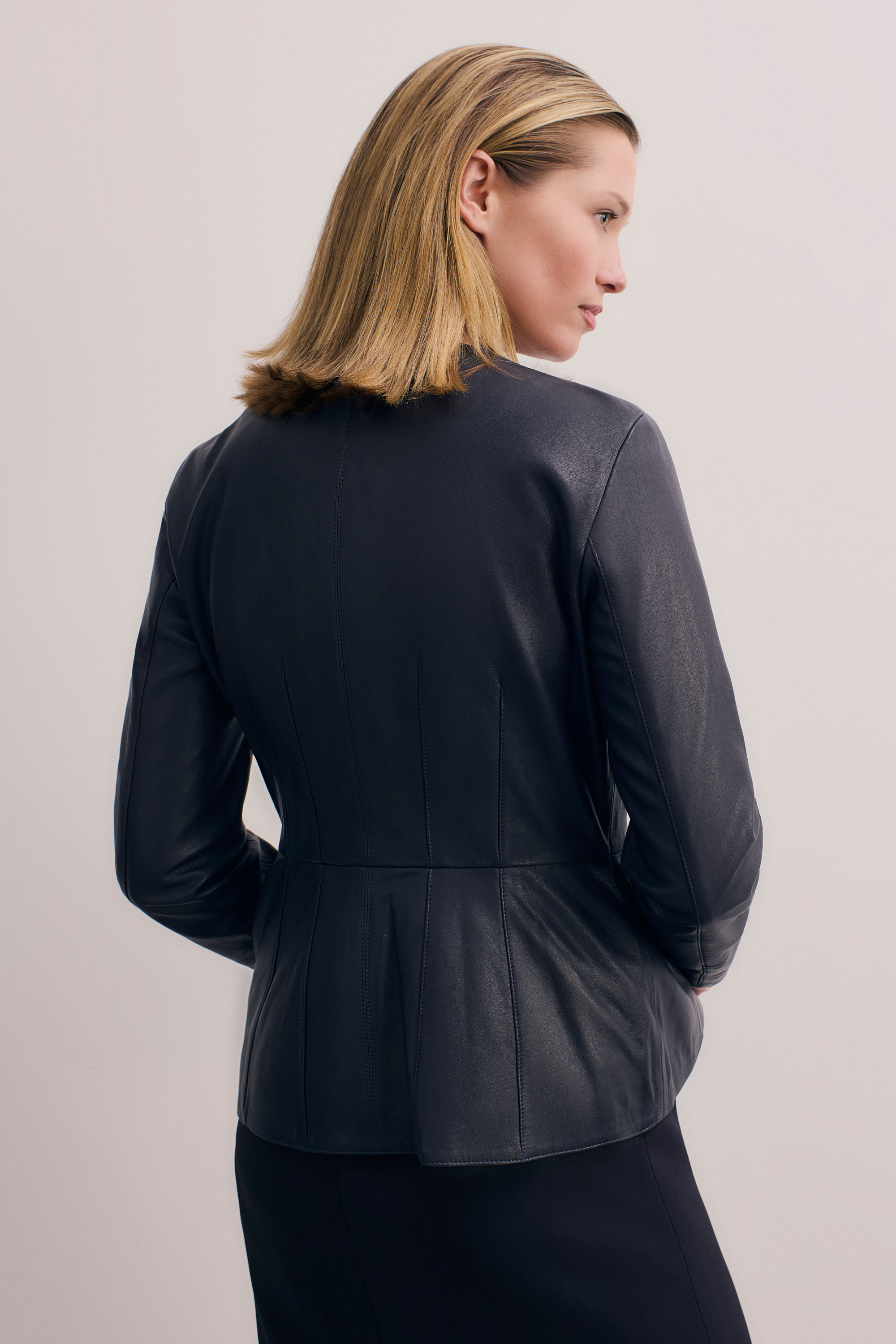 Crafted from 100% responsibly sourced leather that's been vegetable tanned, our luxurious Ginevra is a wardrobe essential, our way. It’s cut with a contemporary crew neckline and topstitching darts for detailing, while a subtle peplum waist speaks to our signature style.