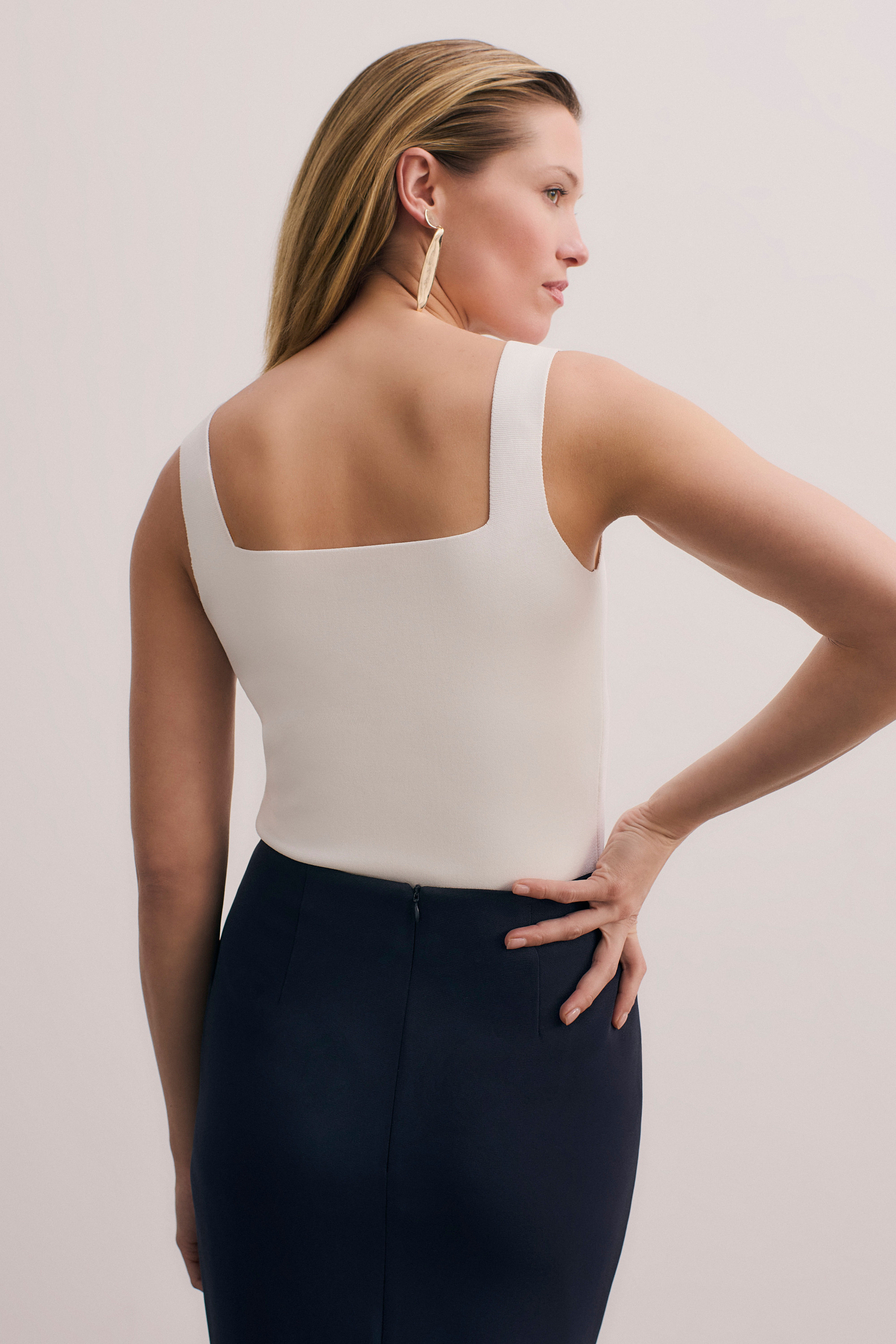 - Ivory sculpt stretch knit.