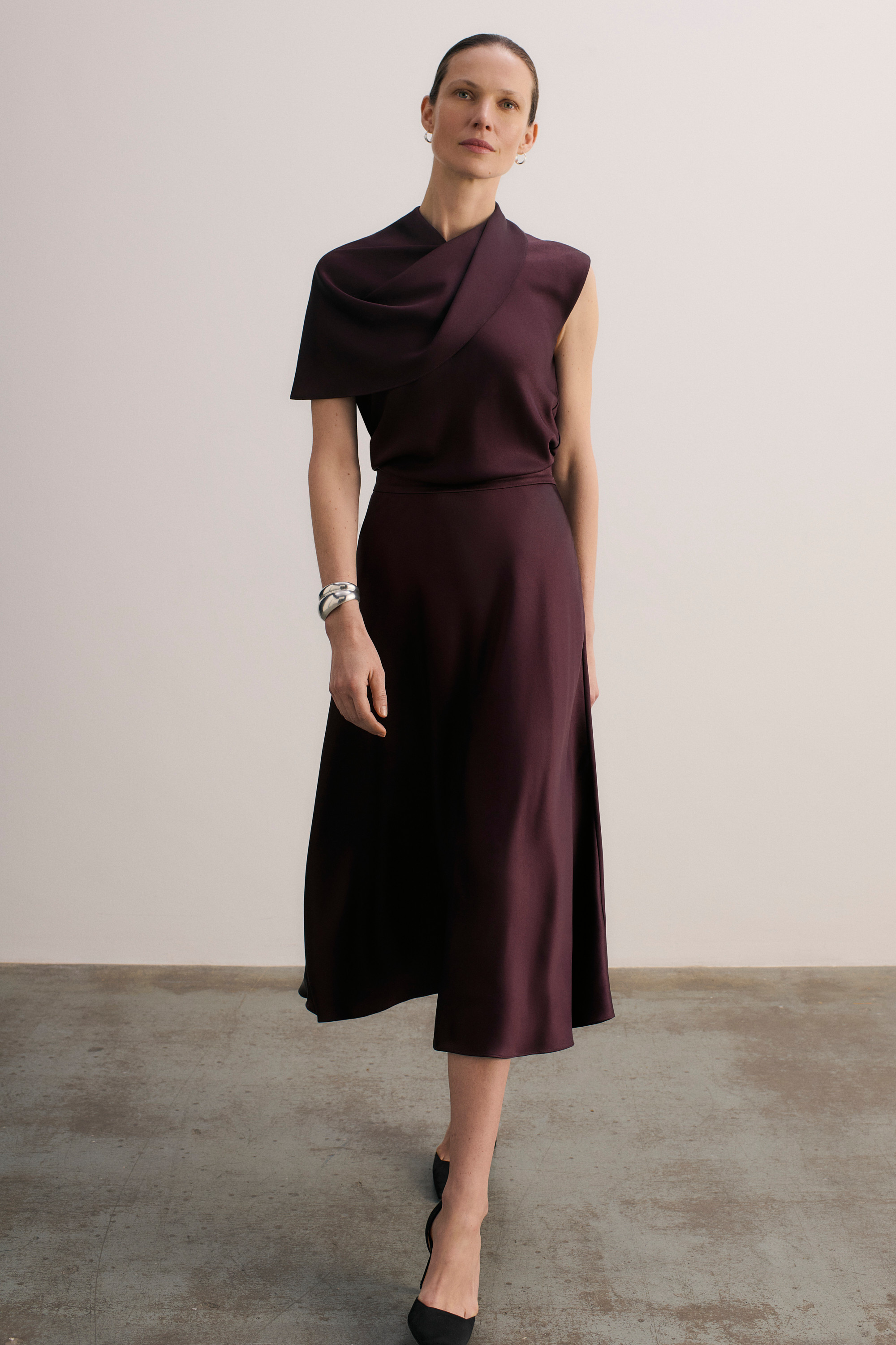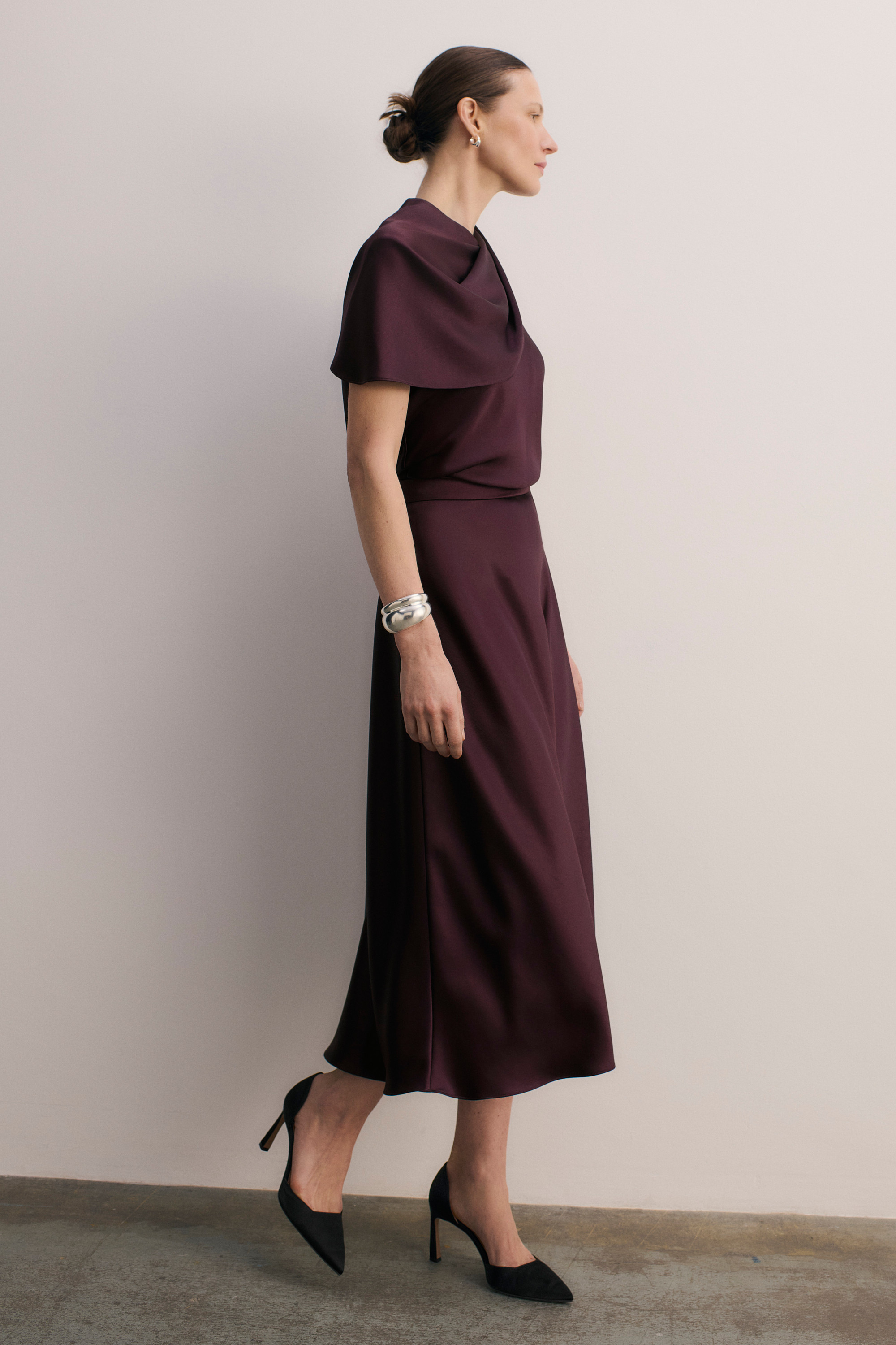 - Deep plum satin.