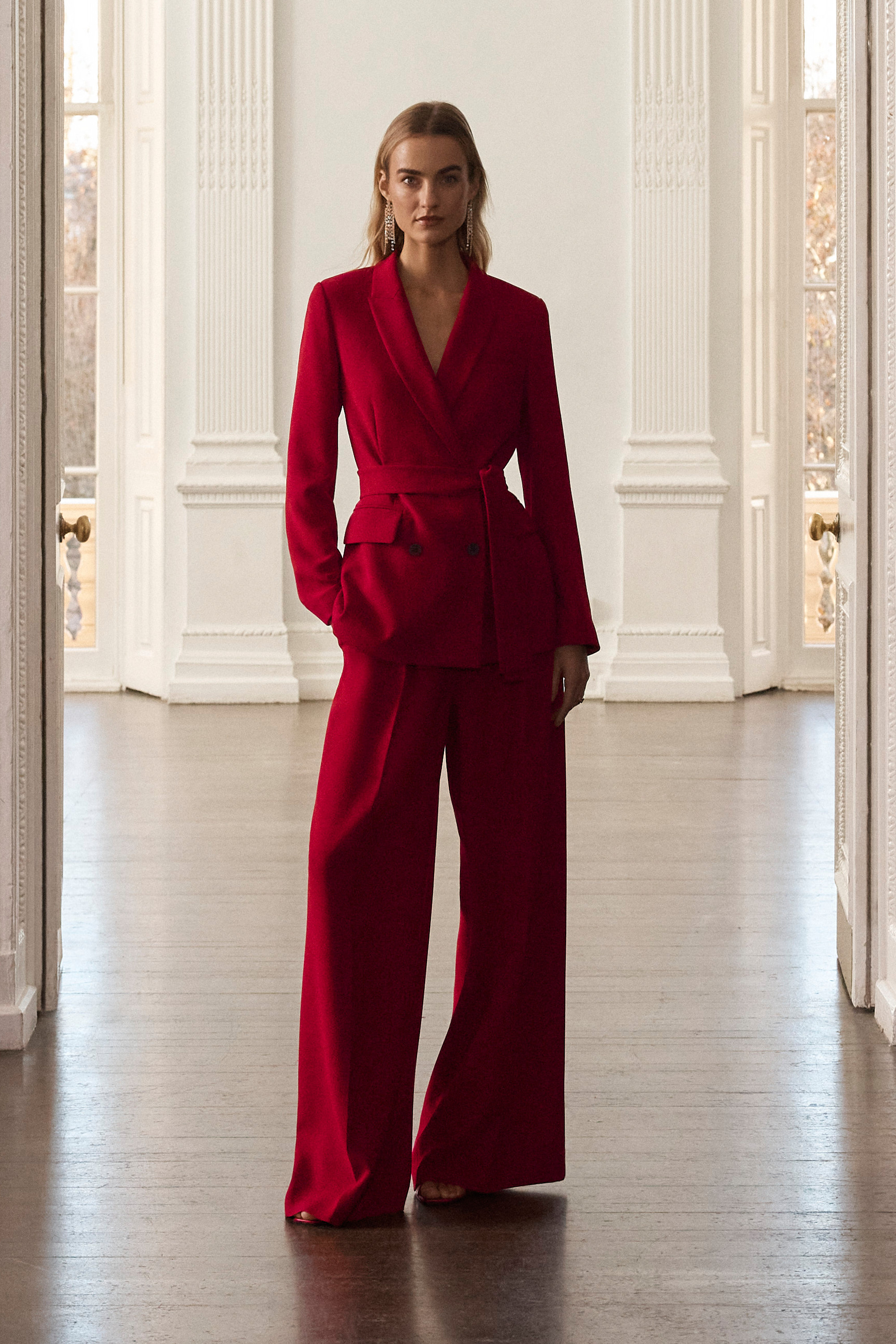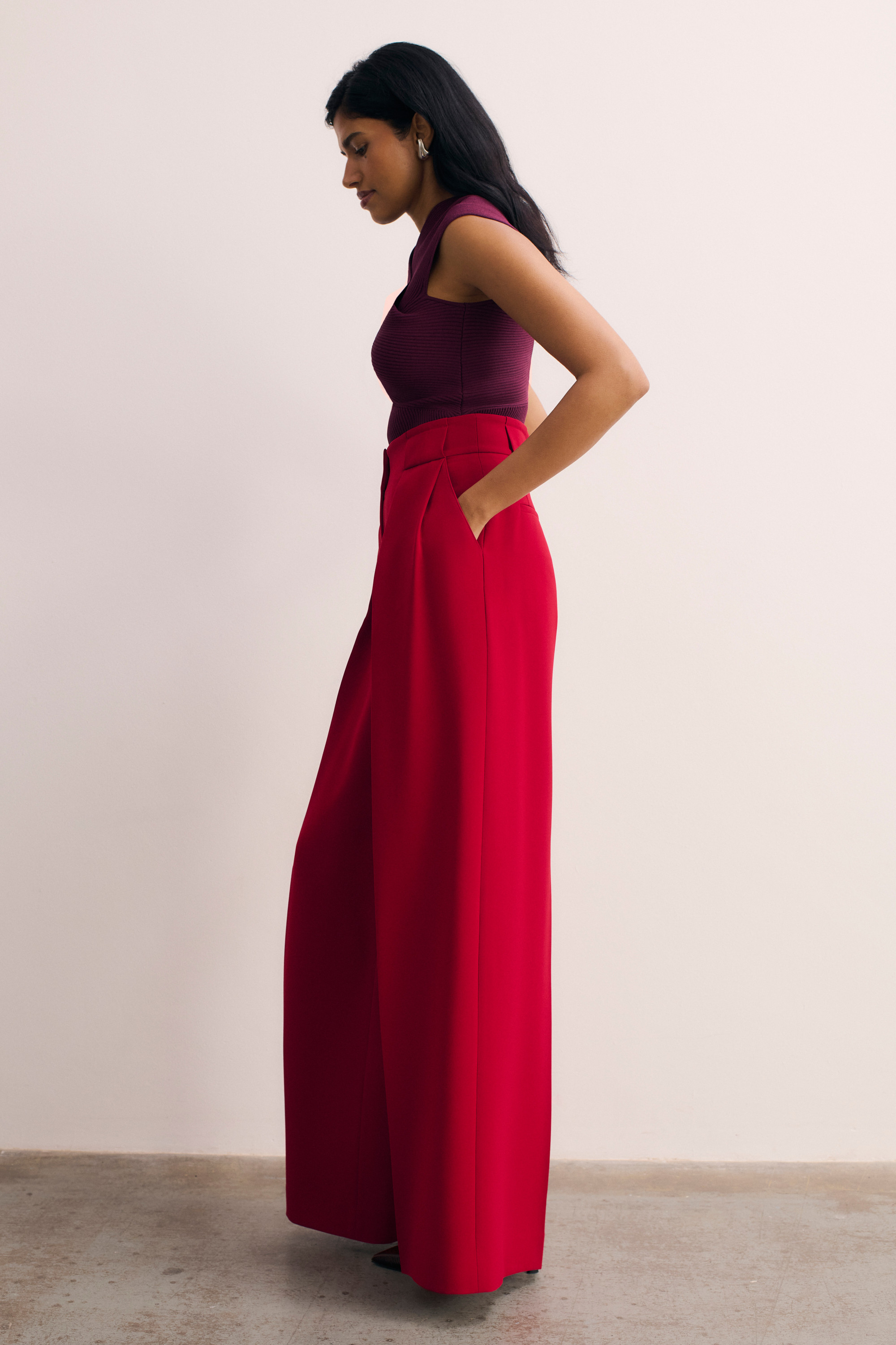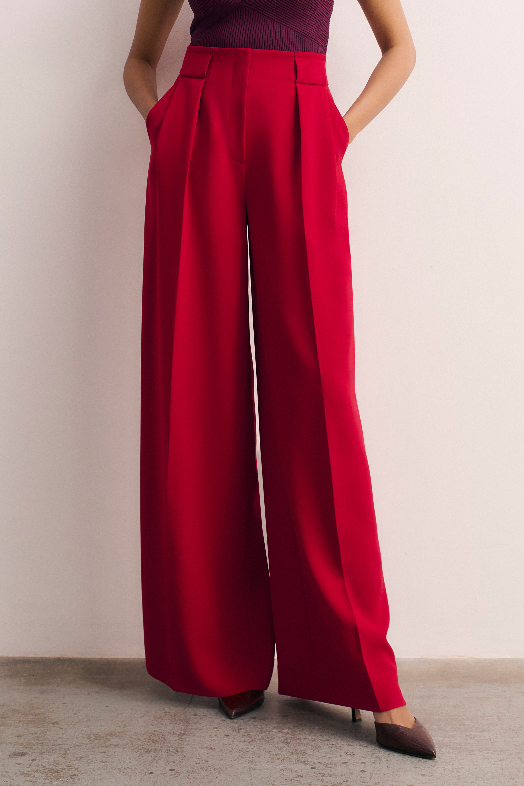 Lyon Crepe Palazzo Trousers Deep Scarlet Red