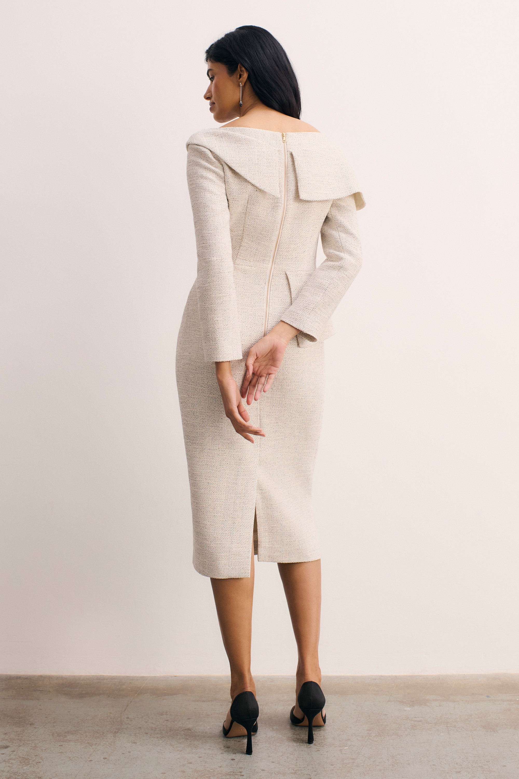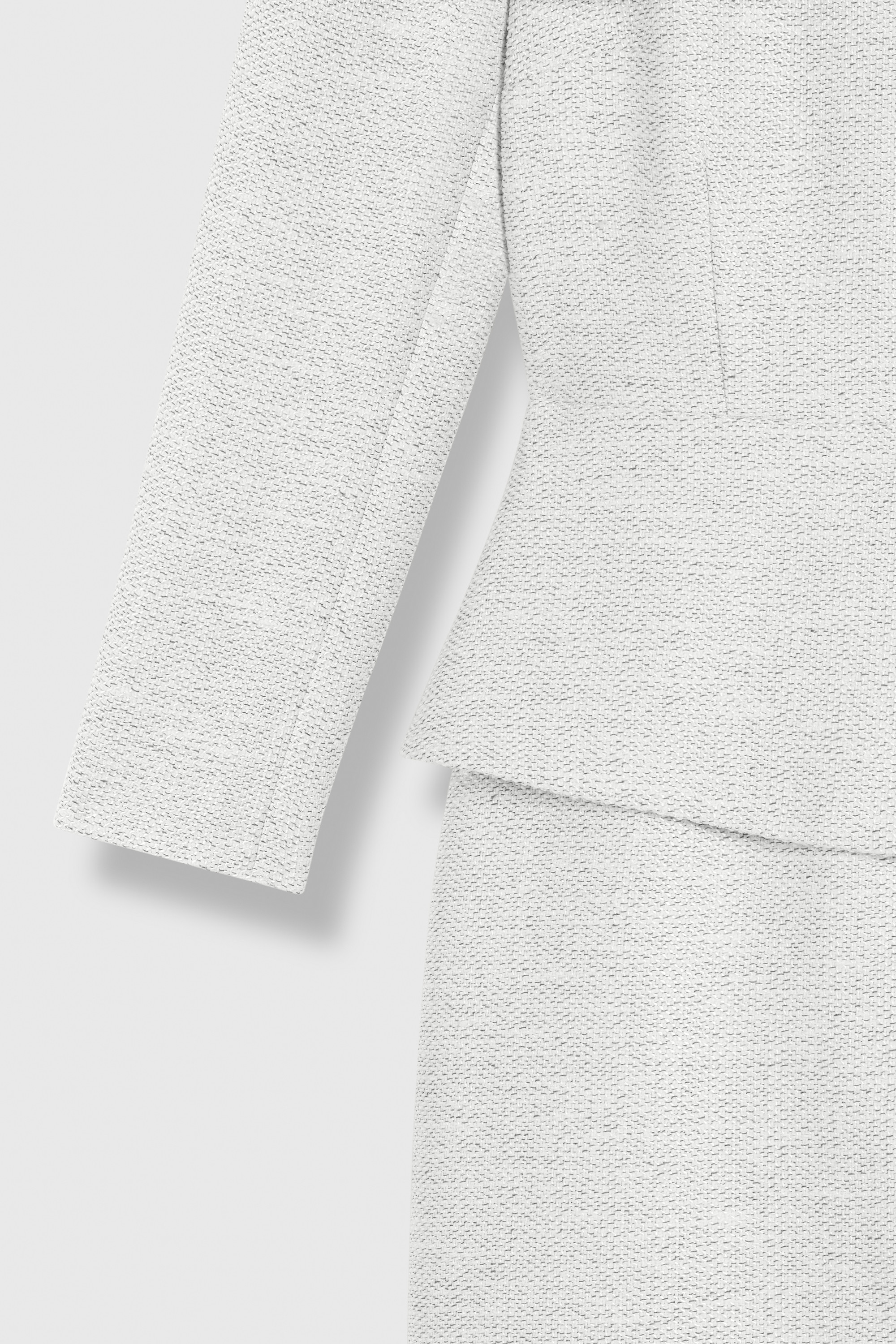 - Winter white Italian cotton-blend tweed.