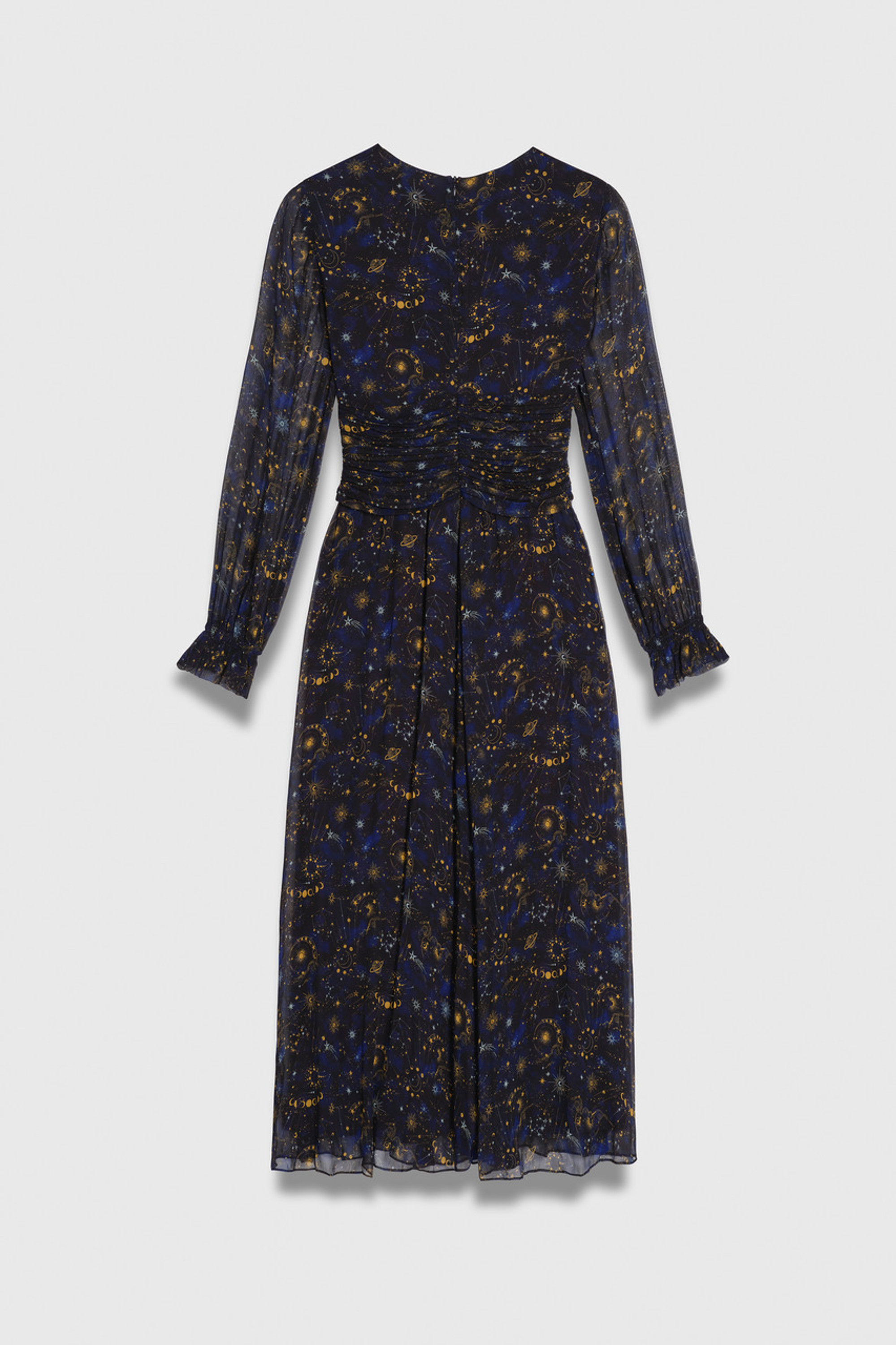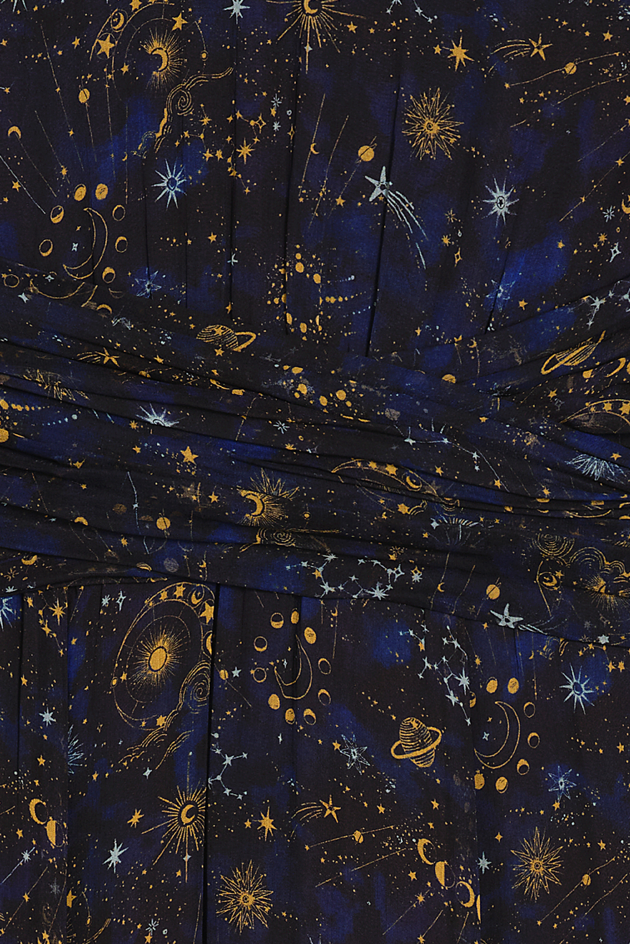 This season, our standout Portofino dress is detailed with a beautiful celestial print that was painted and printed in an Italian studio. Crafted from fluid silk chiffon, the fit-and-flare silhouette has a crew neckline and subtle volume in the sleeves, while a hand-draped crossover waist detail creates the most flattering fit.