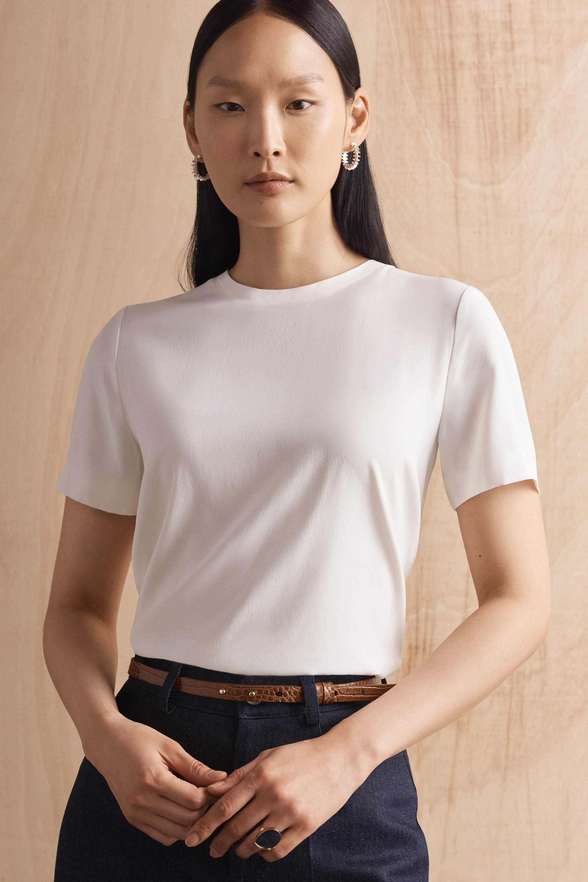 Cut to a relaxed silhouette with a crew neck, the Roche T-shirt pairs perfectly with tailored trousers or more casual separates. Plus, it’s crafted from satin-backed stretch silk, so it’s matte on the outside (for that classic T-shirt look) and supersoft on the inside.