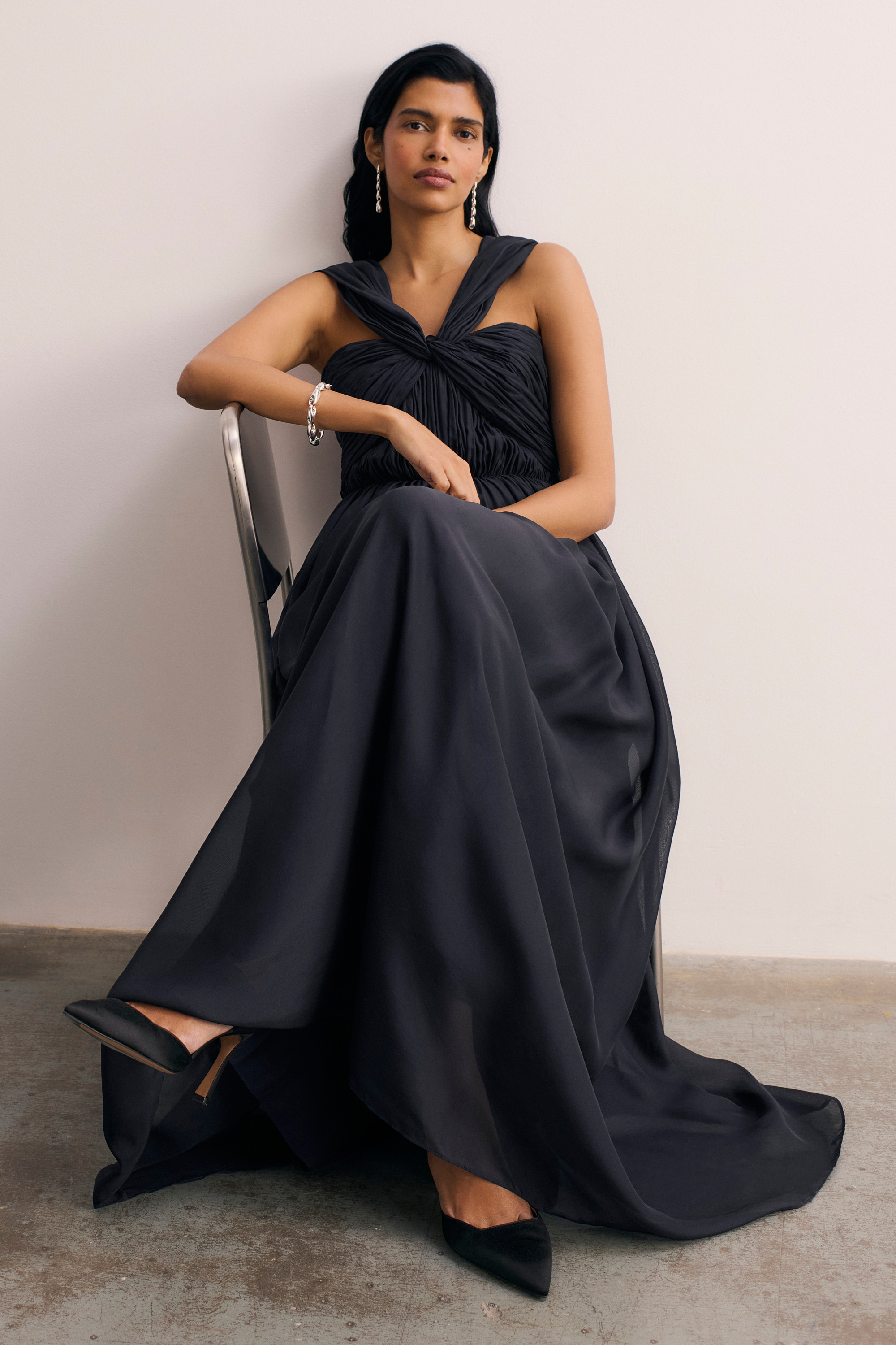 The ultimate event-ready dress, Sevilla is crafted from pure silk to a fluid silhouette with gathers detailing its body and twisted neckline. We’ve inserted clever boning between the seams in the bodice for structure, while its maxi skirt elegantly hangs from the frame. Wear yours as a halterneck or open the gathered straps to create small sleeves that cover the shoulders.