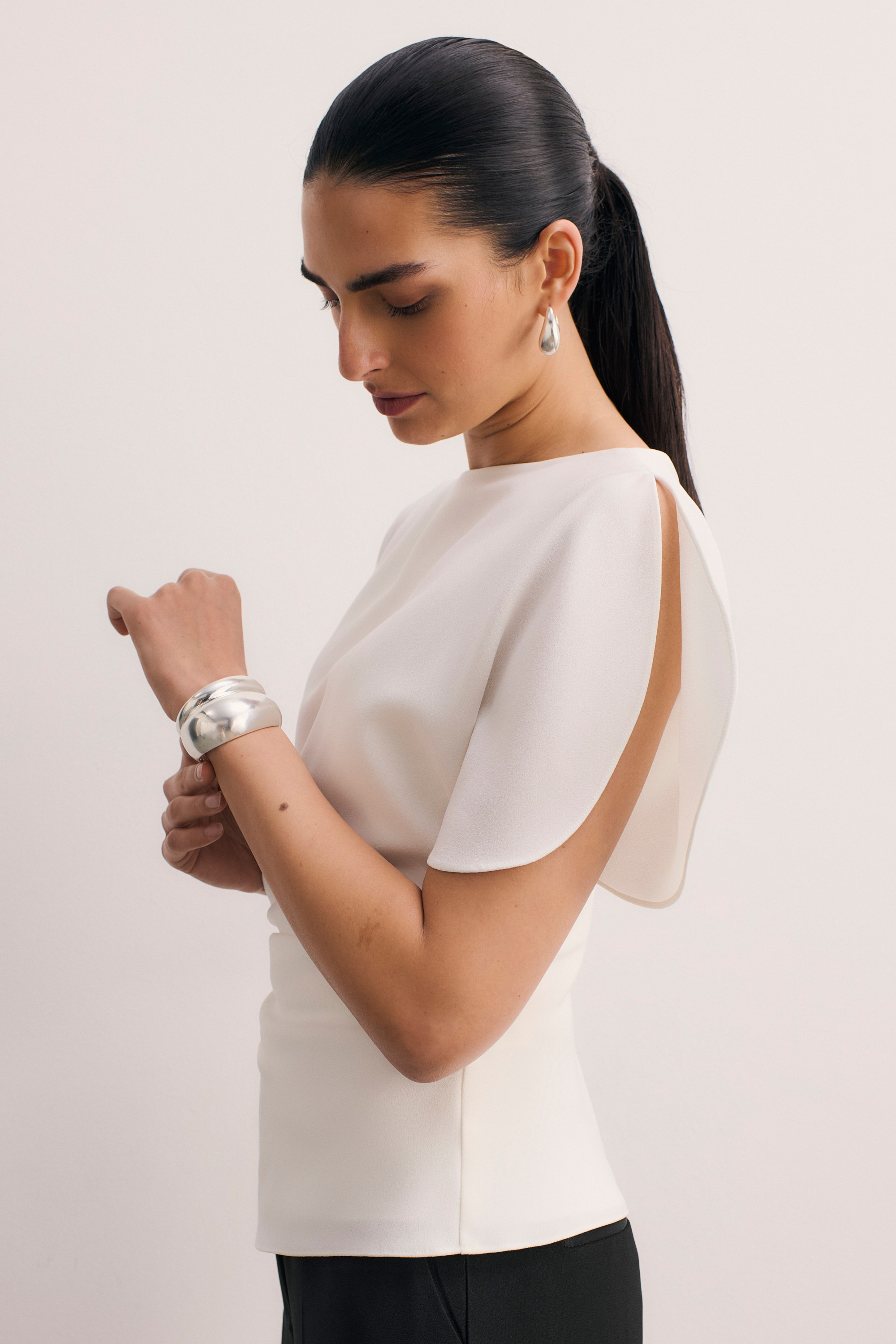In the Curve bangle, two perfectly proportioned curves of sterling silver meet with a sharp, contrasting line. It wraps naturally around the wrist for comfortable wear.