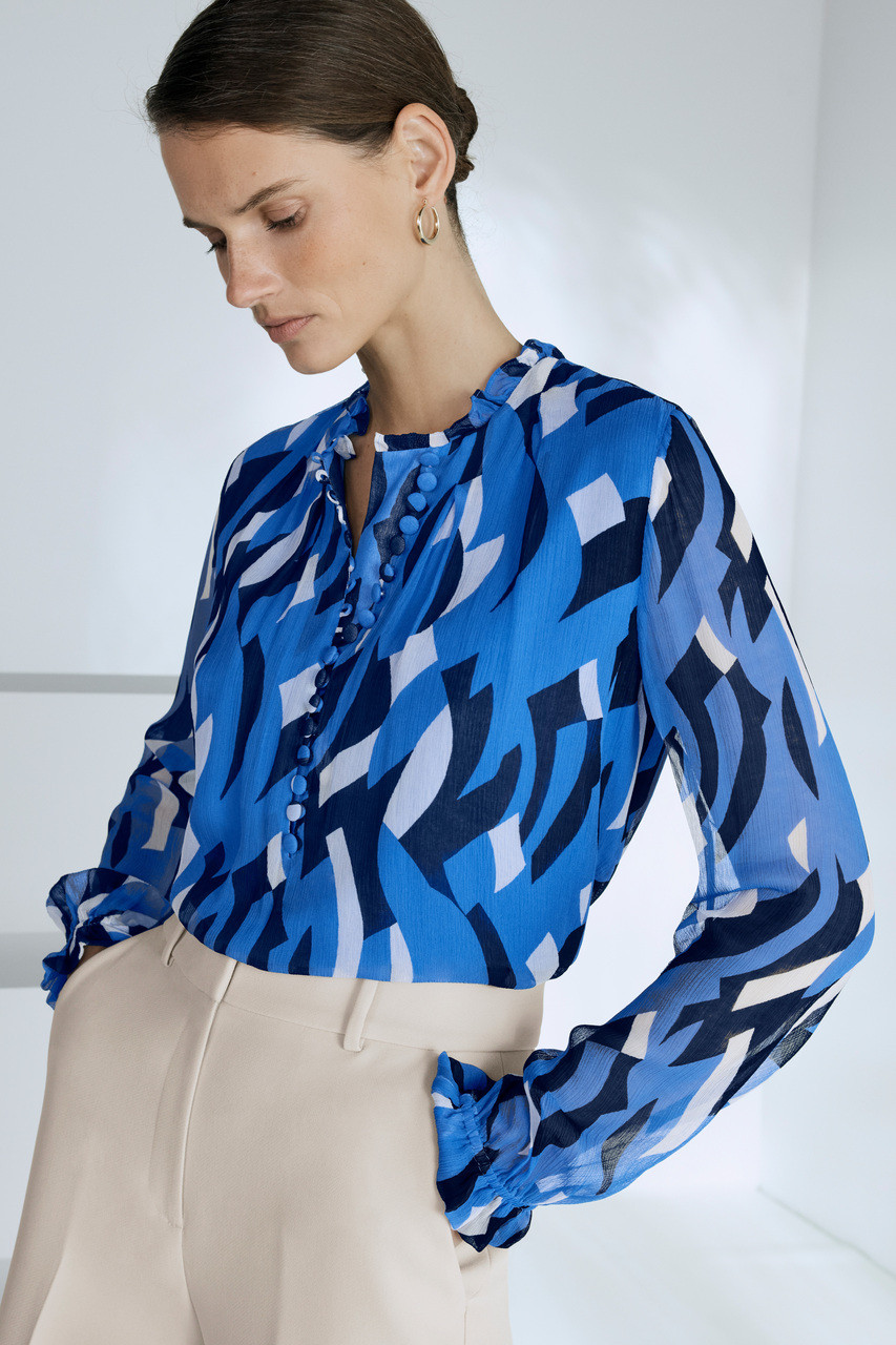 For the new season, our bestselling Tierney blouse is presented in an exciting print, which is inspired by fine art and has been hand-painted by our talented design team. The relaxed silhouette, which is crafted from crinkle georgette, has long unlined sleeves, a gathered frill neckline and a row of fabric-covered buttons that run down the front. Dressed up or down, it'll work overtime in your capsule; just undo a few buttons for a more casual look.