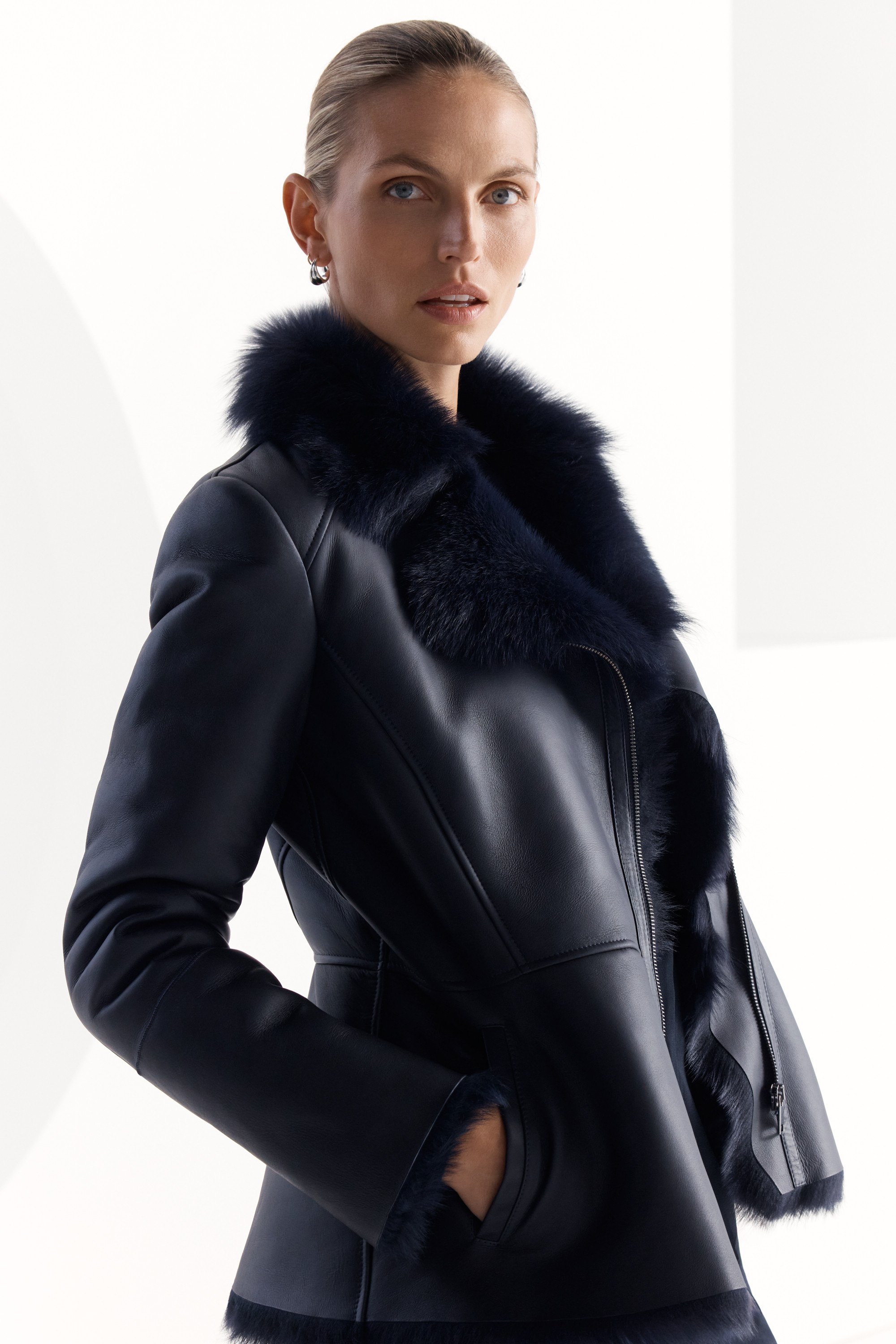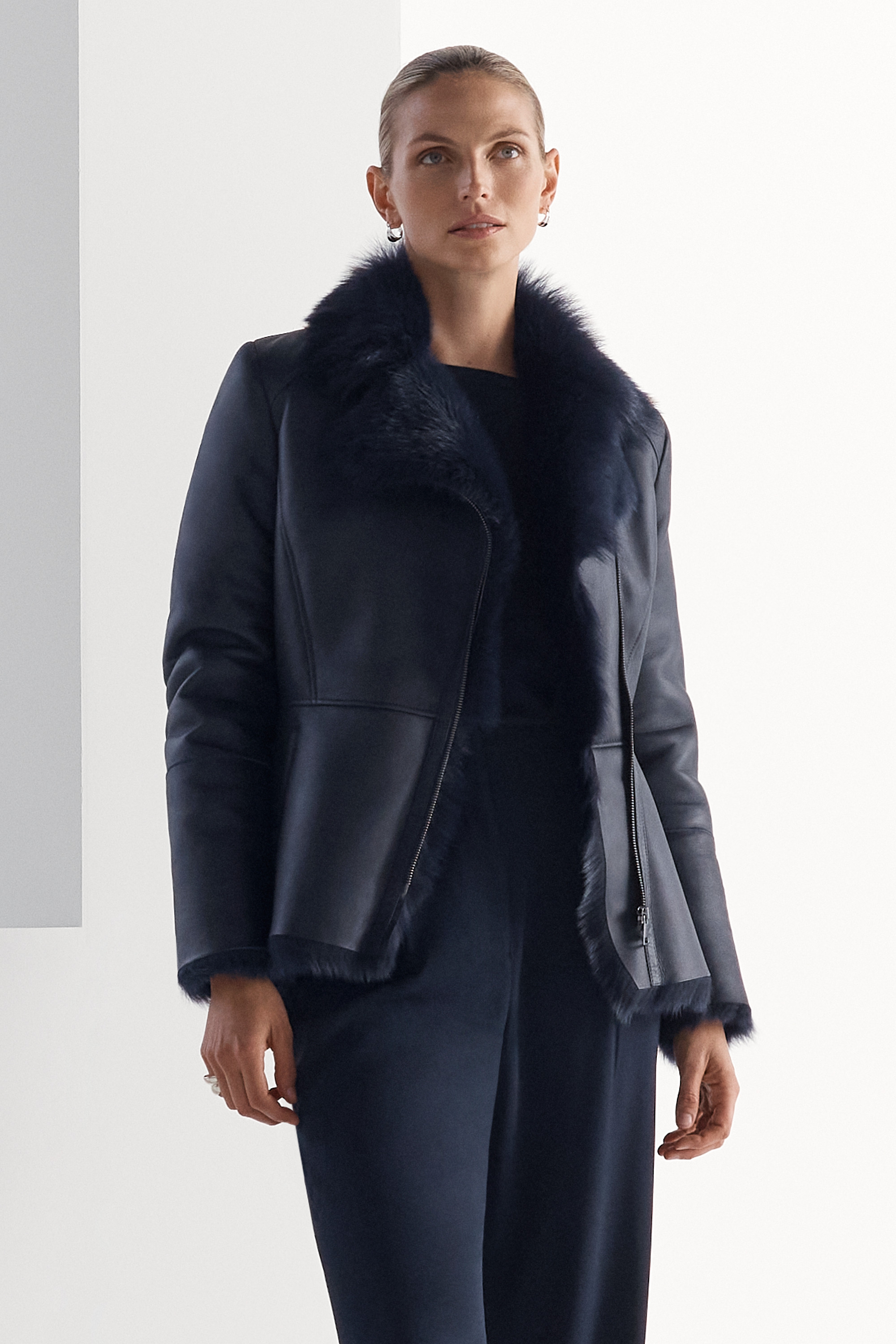 A Fold first, the Torrano jacket is crafted from premium Spanish sheepskin. Luxurious, long-haired shearling lines the entire jacket and details the collar, which can be left open or zipped closed. It’s cut with a fitted waist (a Fold signature) and finished with front welt pockets.