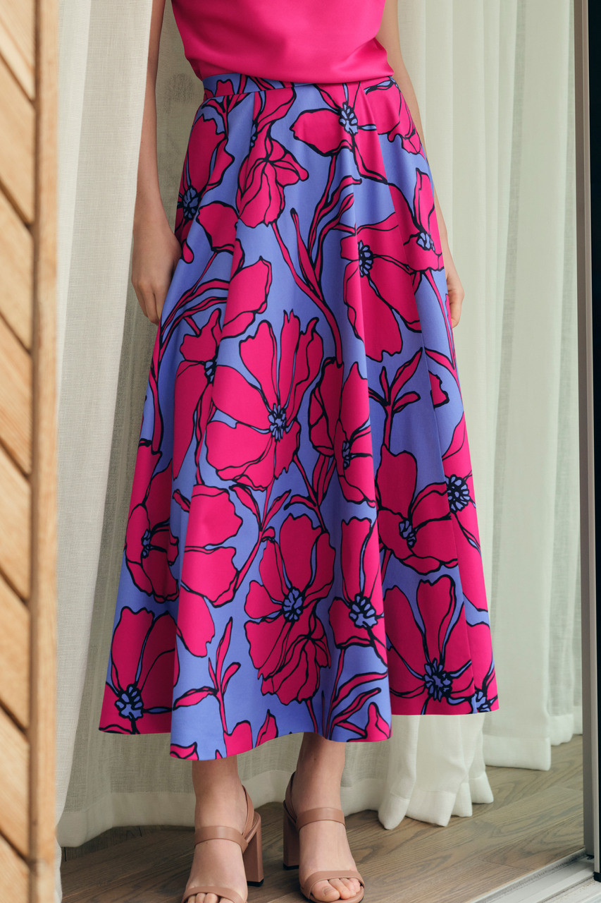 The ultimate social separate, Valance is detailed with a beautiful statement floral print in fuchsia pink and summer blue. The Italian stretch cotton it’s crafted from keeps things lightweight and comfortable, while meticulously placed panels to the front and back create subtle volume for a flattering silhouette. A centre-back invisible zip keeps things clean, and pockets in the side seams ensure practicality is taken care of. Style yours with the Skye top for a chic event-ready look.