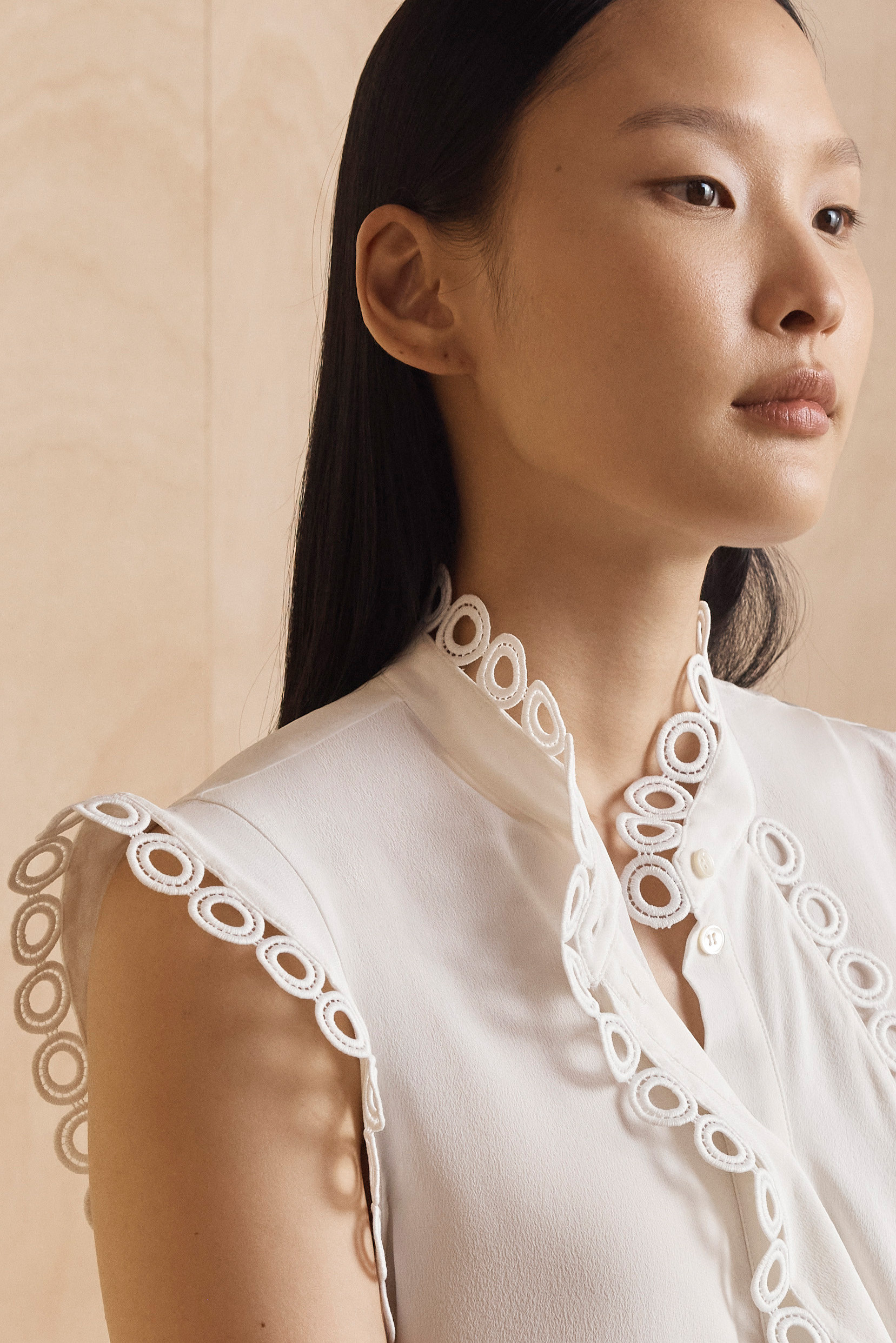 Elevate your tailoring with the Veroli blouse. Crafted from lightweight silk, it’s detailed with circular geometric trims to the sleeve, collar stand and placket that add an elegant flourish to your favourite suiting. But don’t worry – it’s just as powerful when styled alone too.